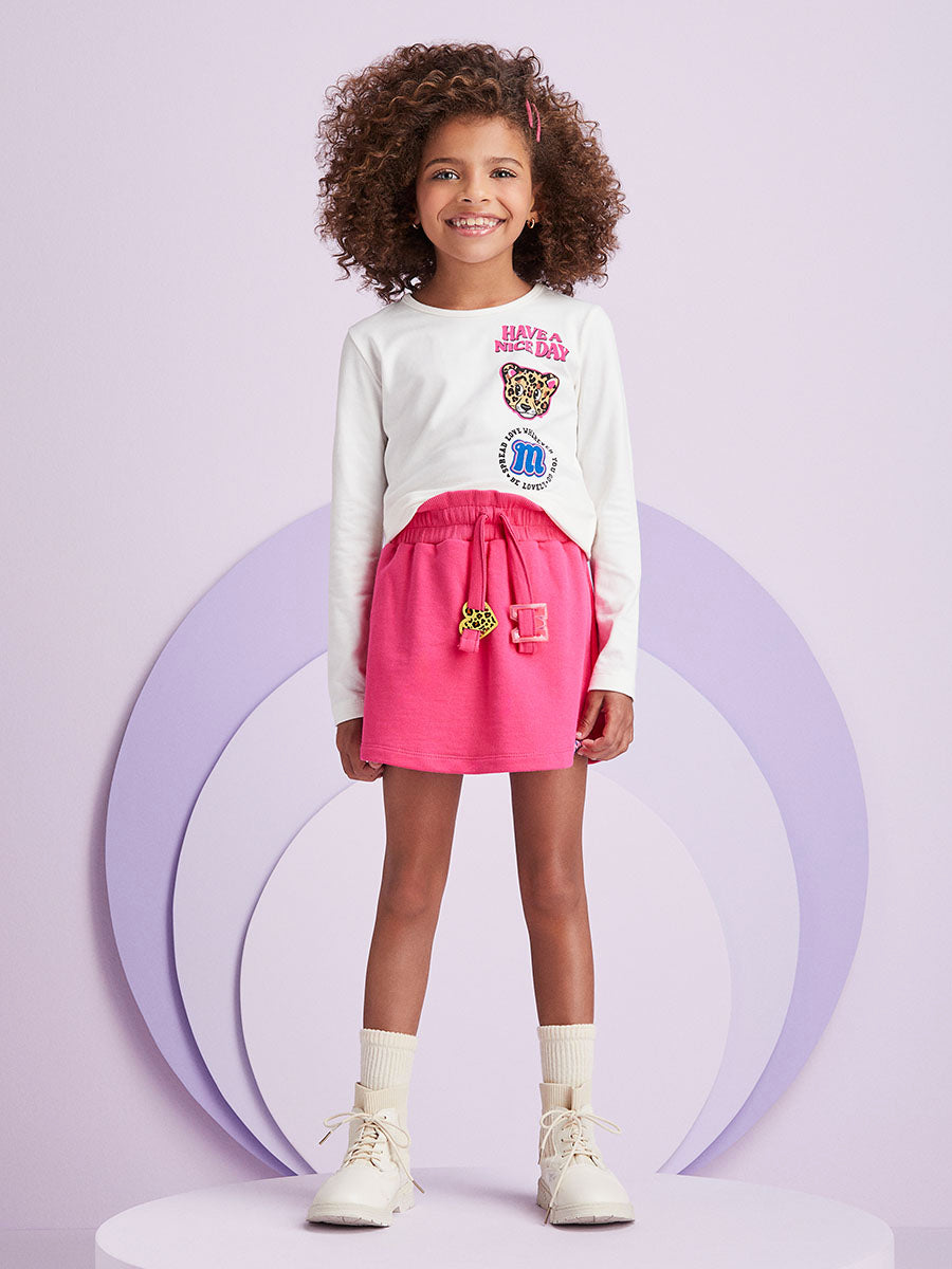 Conjunto Infantil Momi Inverno Shorts Saia Pink e Blusa Oncinha