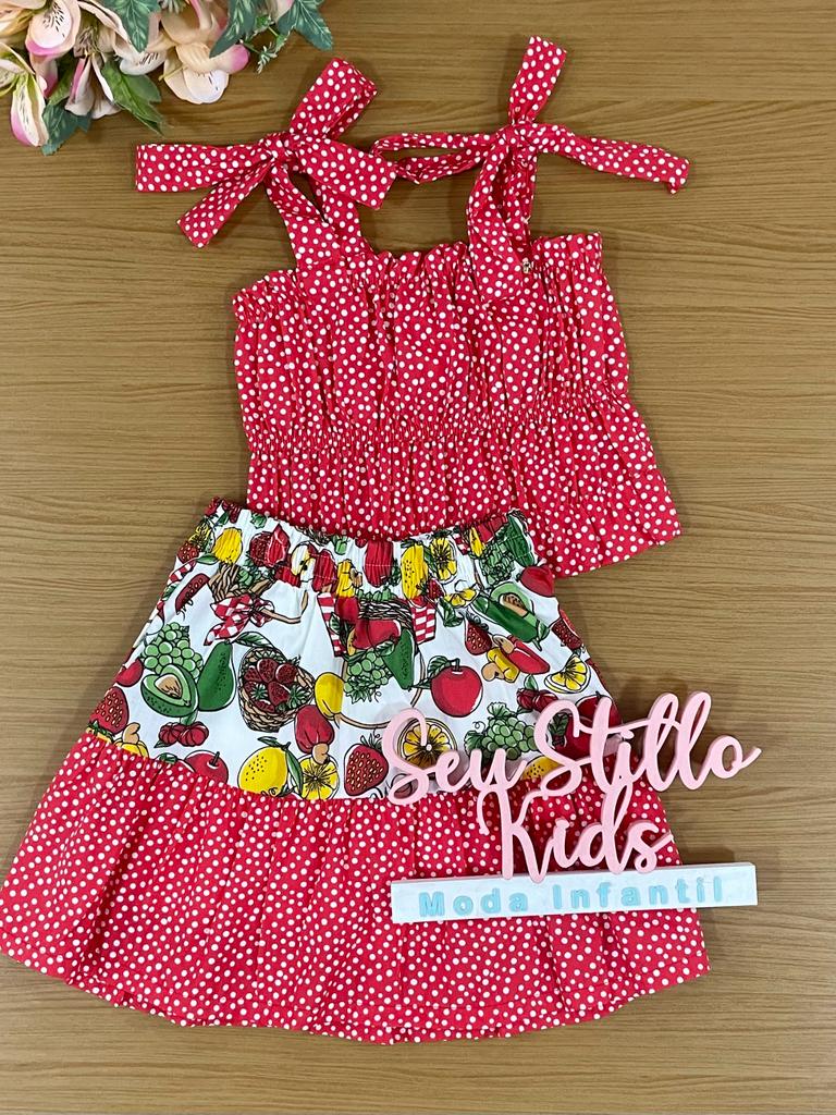 Conjunto Infantil Momi Verão Com Saia e Blusa Frutinha