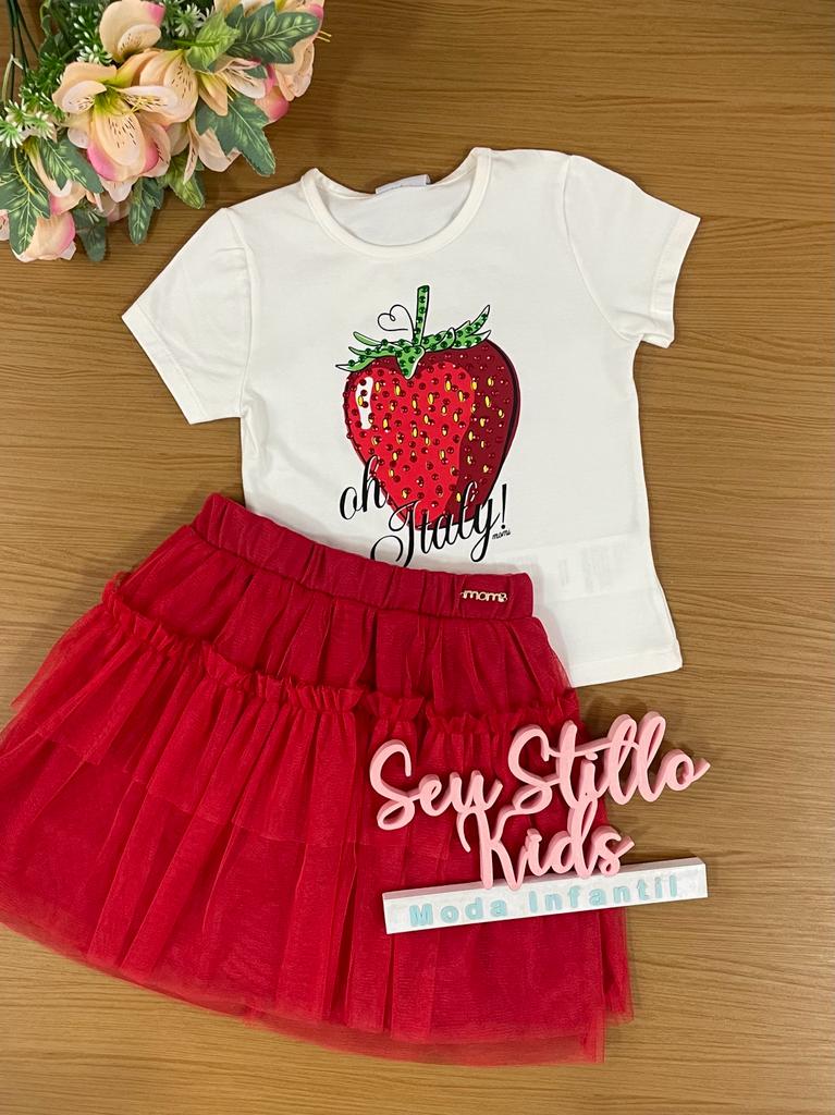 Conjunto Infantil Momi Verão Com Saia e Blusa Moranguinho