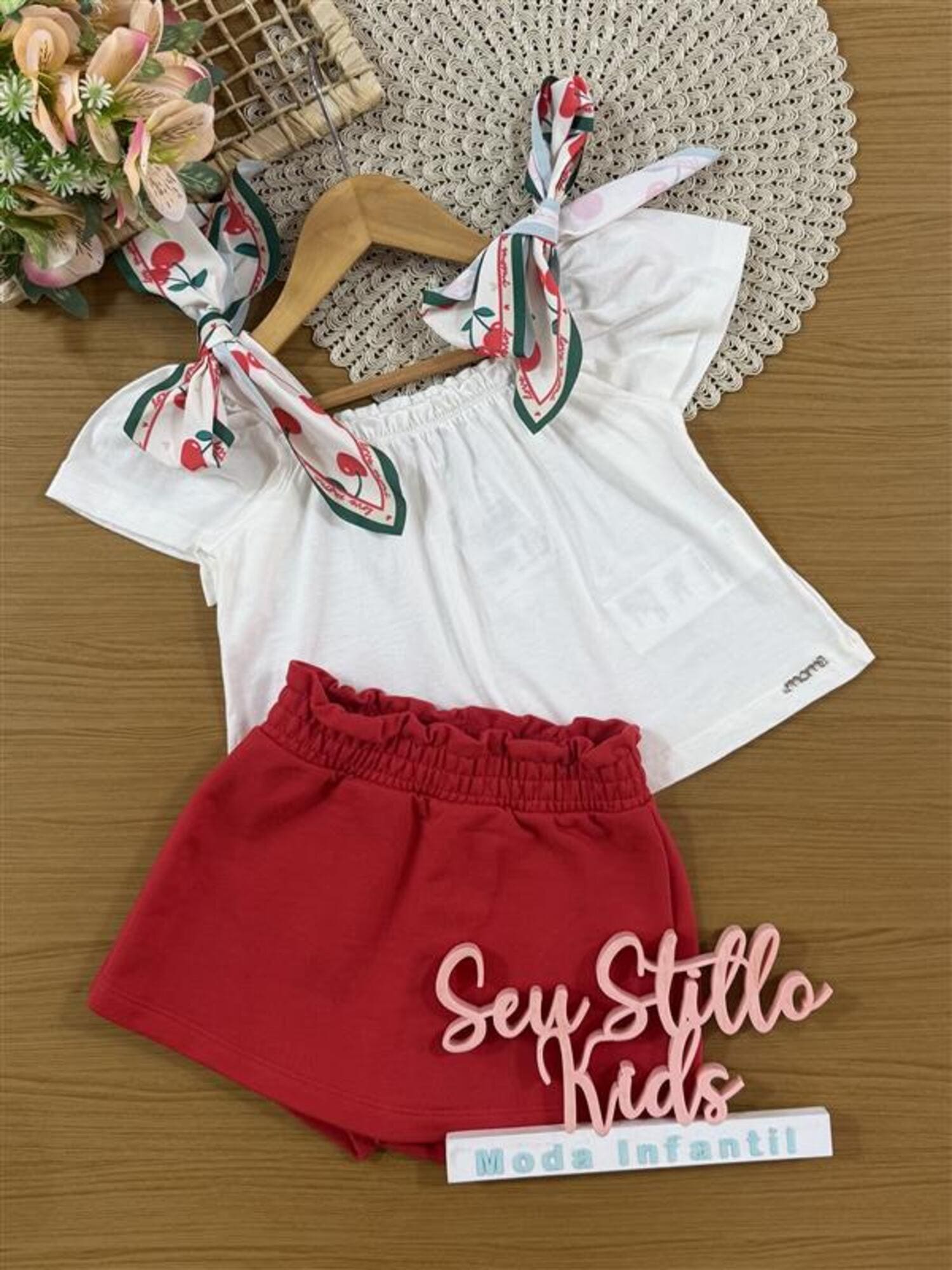 Apresentamos o Conjunto Infantil Momi, perfeito para proporcionar estilo e conforto para sua princesa nos dias mais quentes do ano.