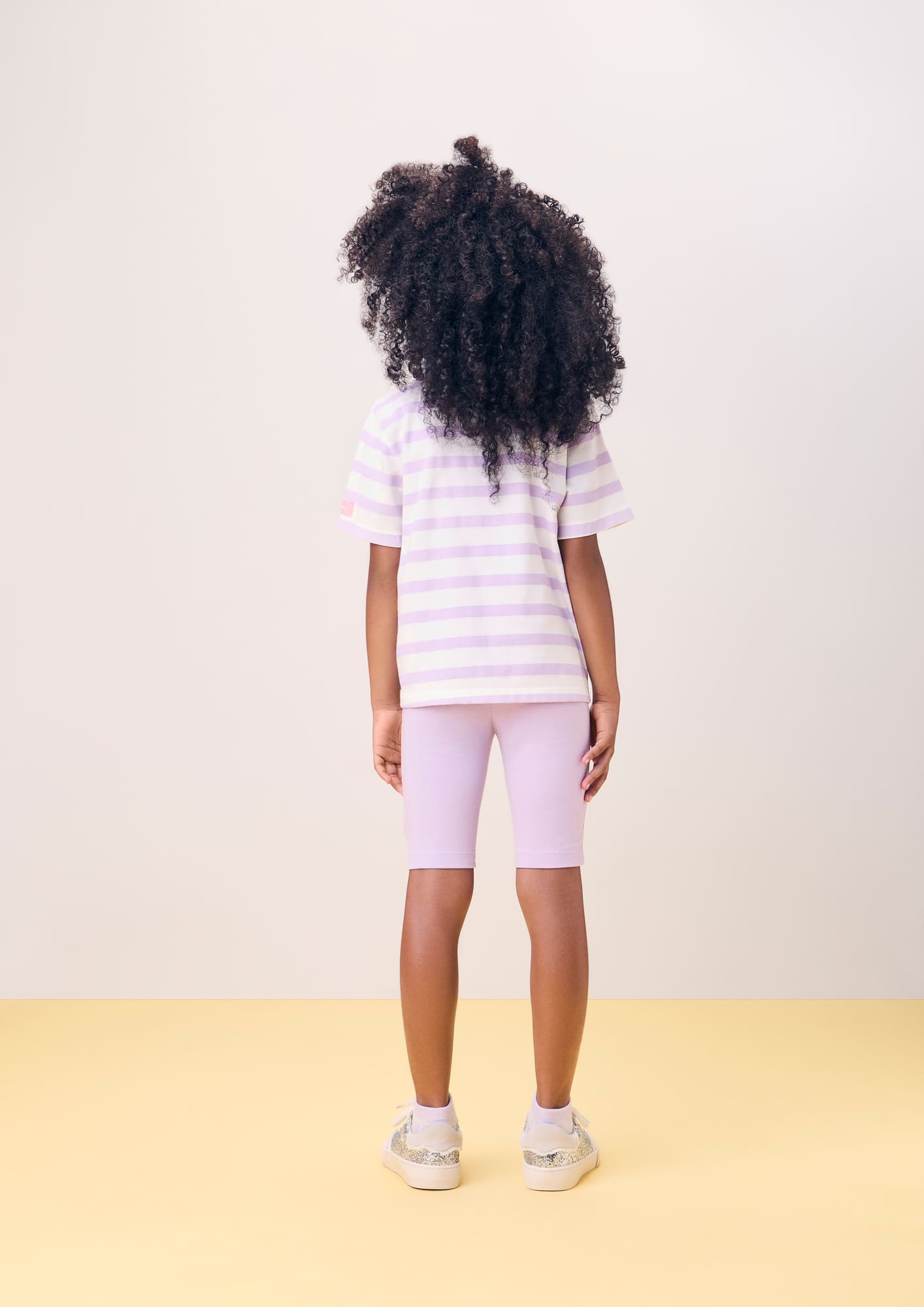 Conjunto Infantil Momi Verão com Shorts Ciclista Lilás e Blusa Listrada Angel e Stitch Disney