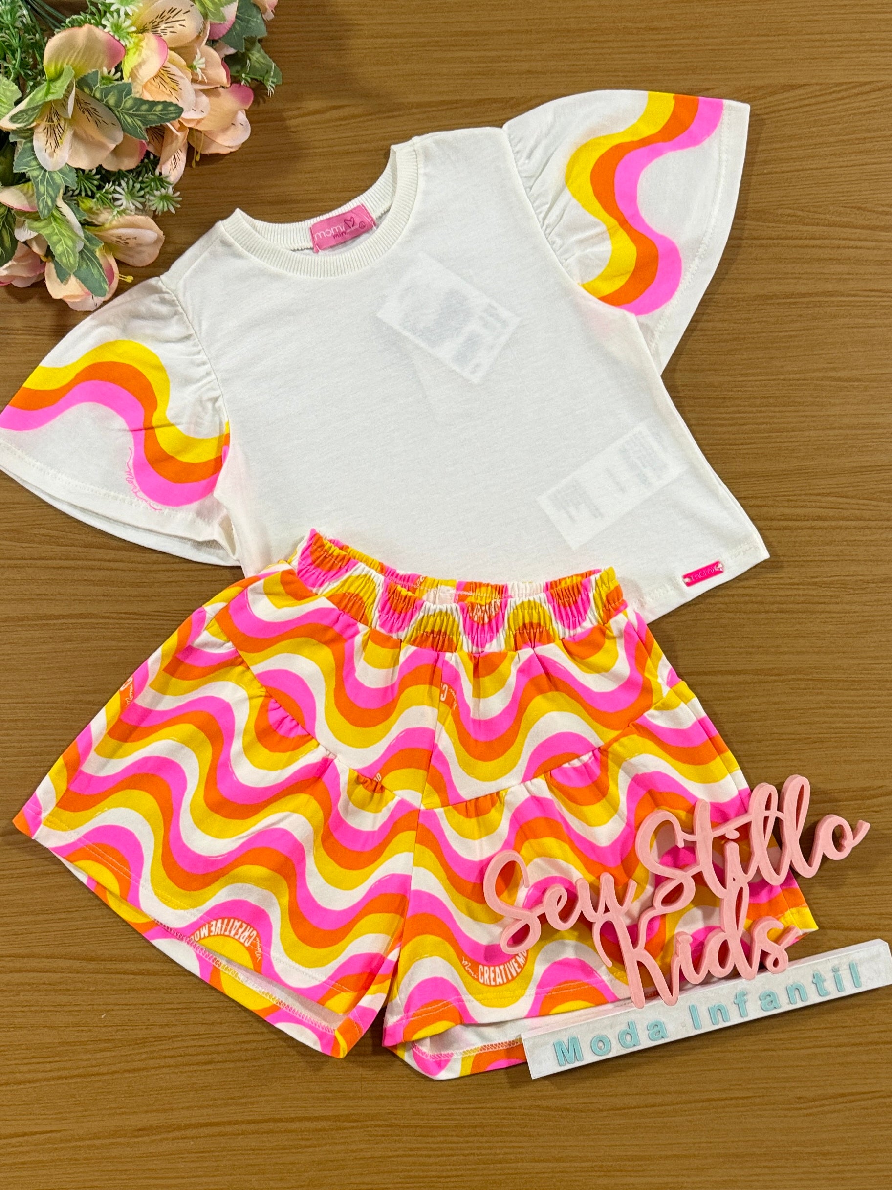 Conjunto Infantil Momi Verão Com Shorts e Blusa Ondas Coloridas