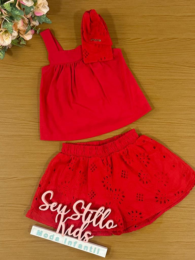 Conjunto Infantil Momi Verão Com Shorts e Blusa Vermelha