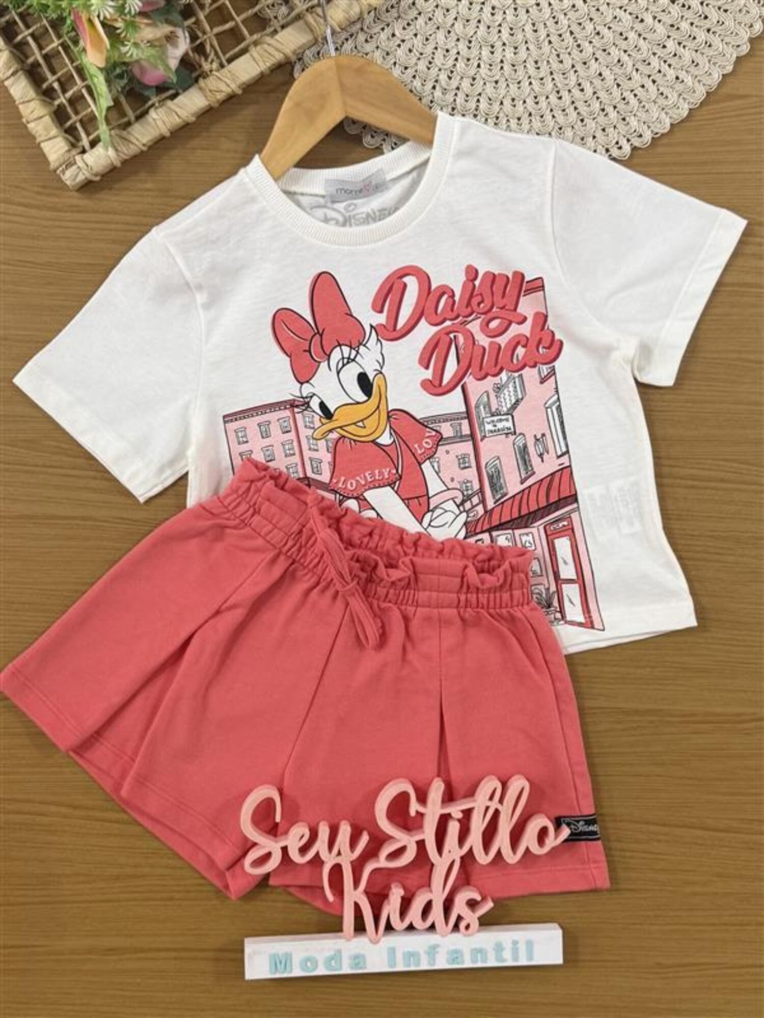 Conjunto Infantil Momi Verão com Shorts Vermelho e Blusa Branca Daisy Duck Disney