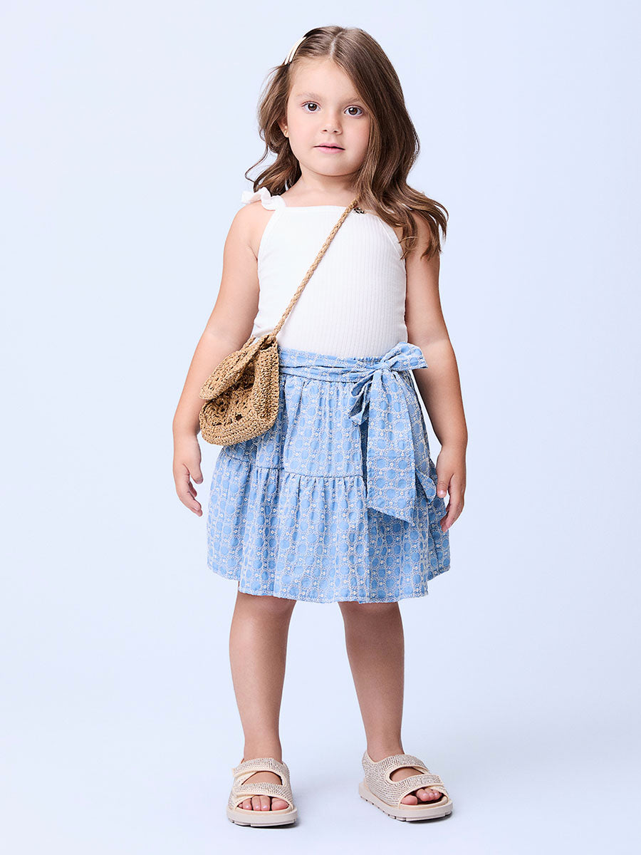 Conjunto Infantil Momi Verão Saia Bordada e Regata Canelada