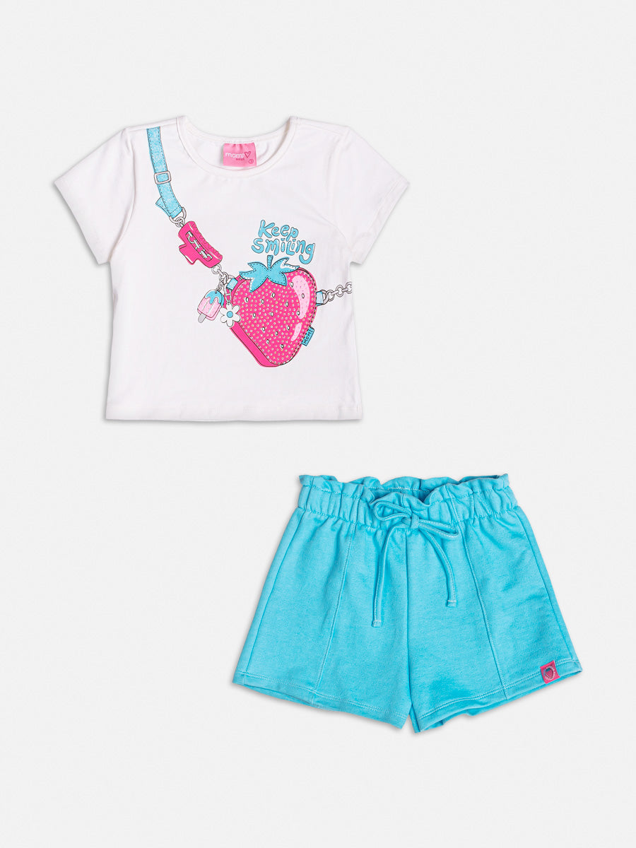 Conjunto Infantil Momi Verão Shorts Azul e Blusa Bolsinha 3D