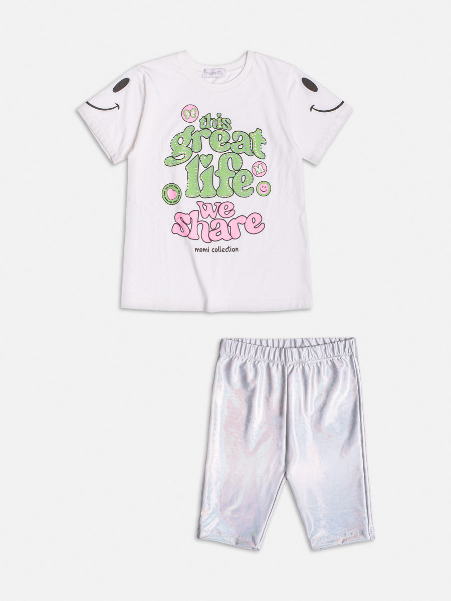 Conjunto Infantil Momi Verão Shorts Ciclista Holográfico Blusa Smile