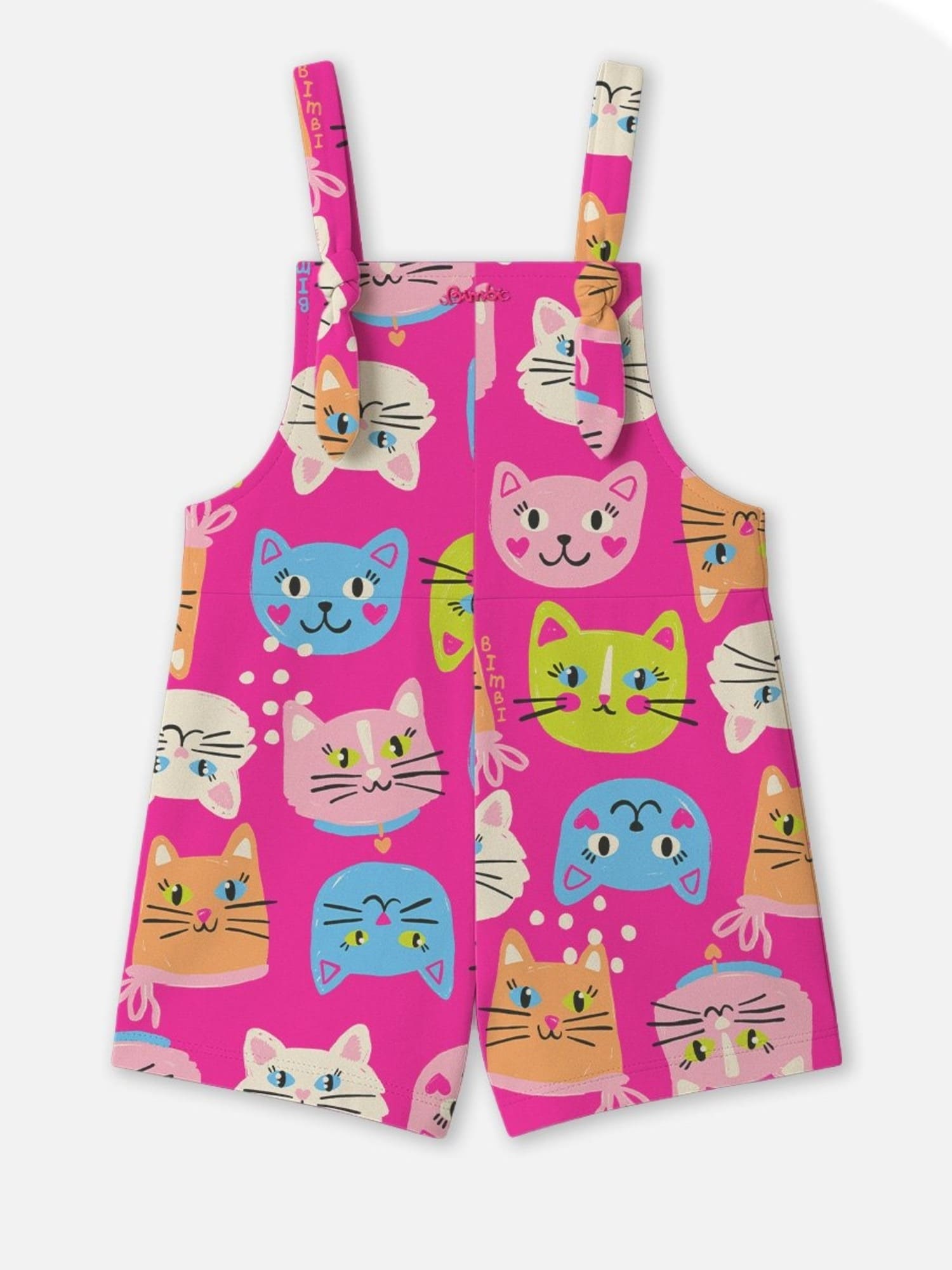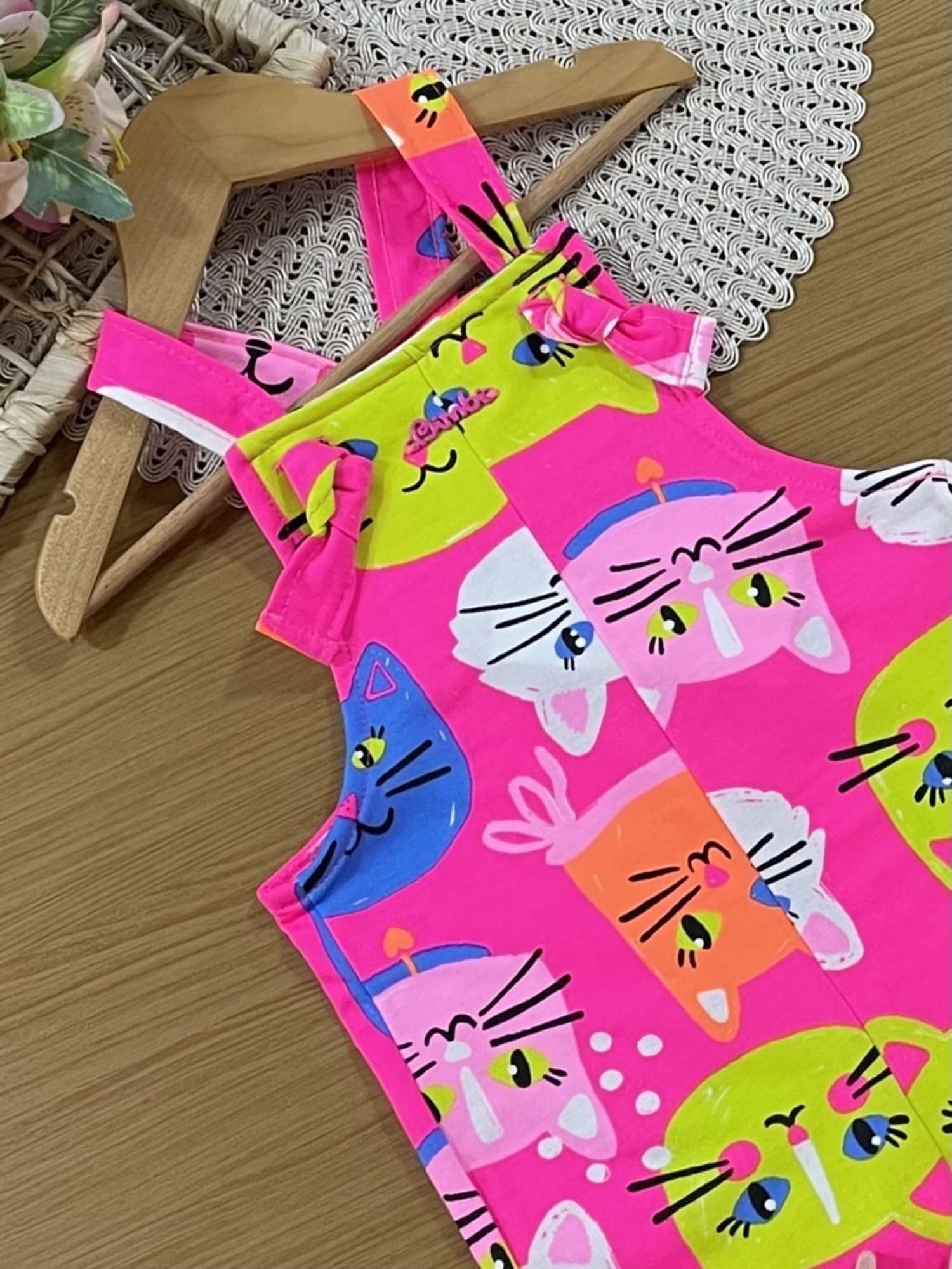 Jardineira Infantil Bimbi Verão Rosa Gatinhas