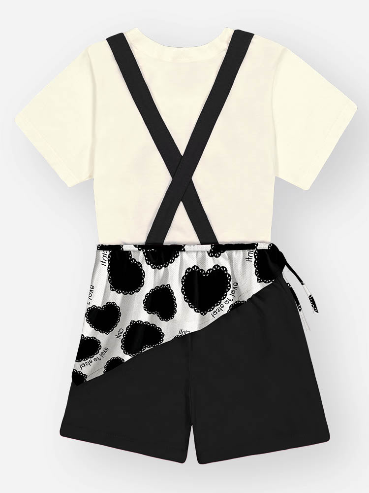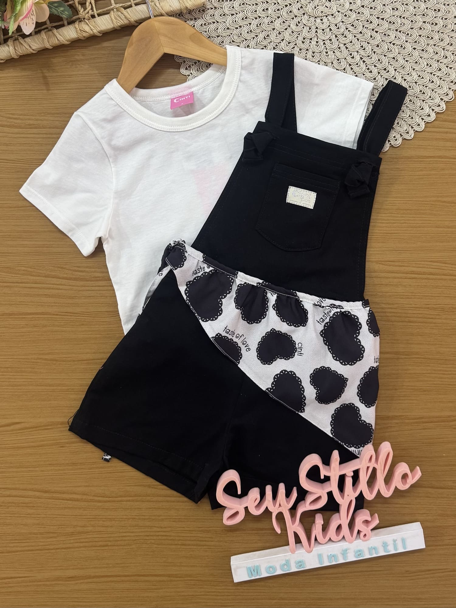 Jardineira Infantil Cinti Verão Preta com Blusa Branca e Lenço