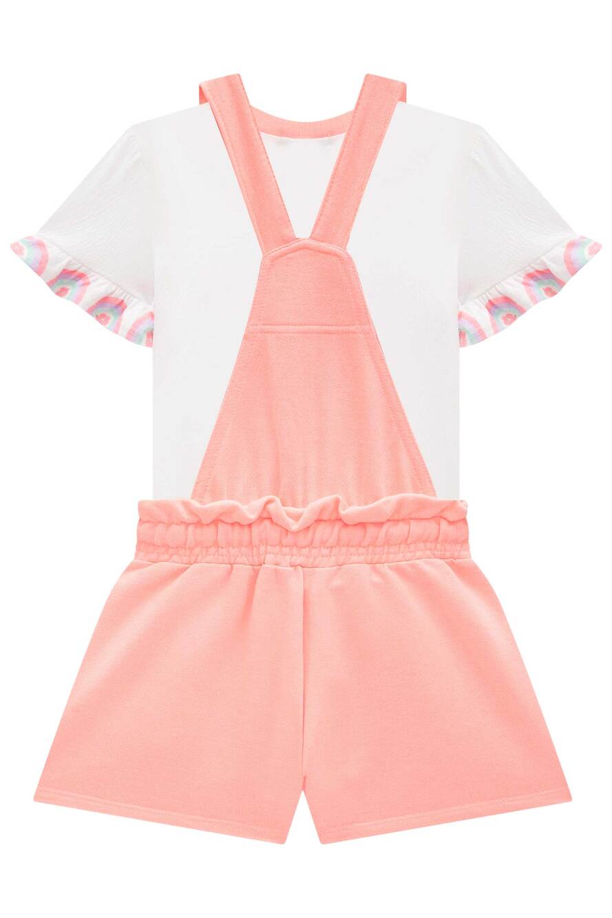 Jardineira Infantil Kukie Verão Com Blusa Arco Irís