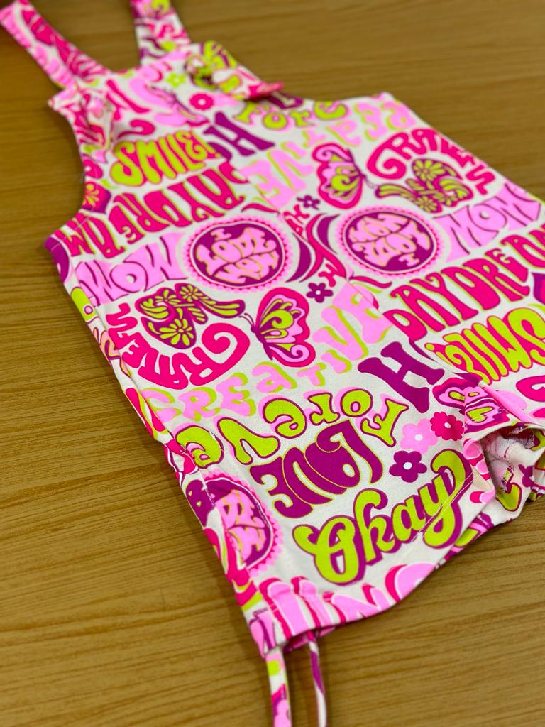 Jardineira Infantil Momi Verão Colorido Letras