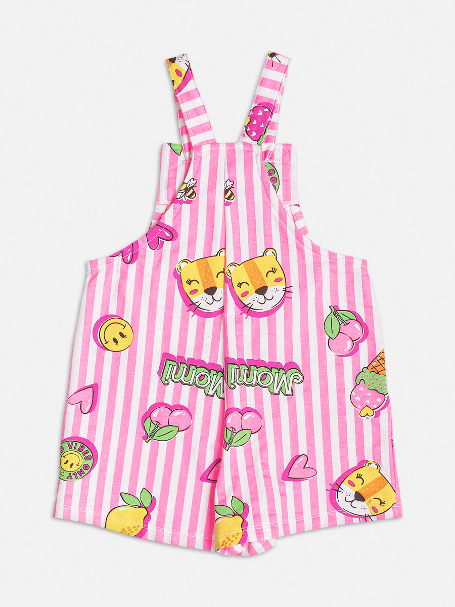 Jardineira Infantil Momi Verão Rosa Listrada Icones com Blusa