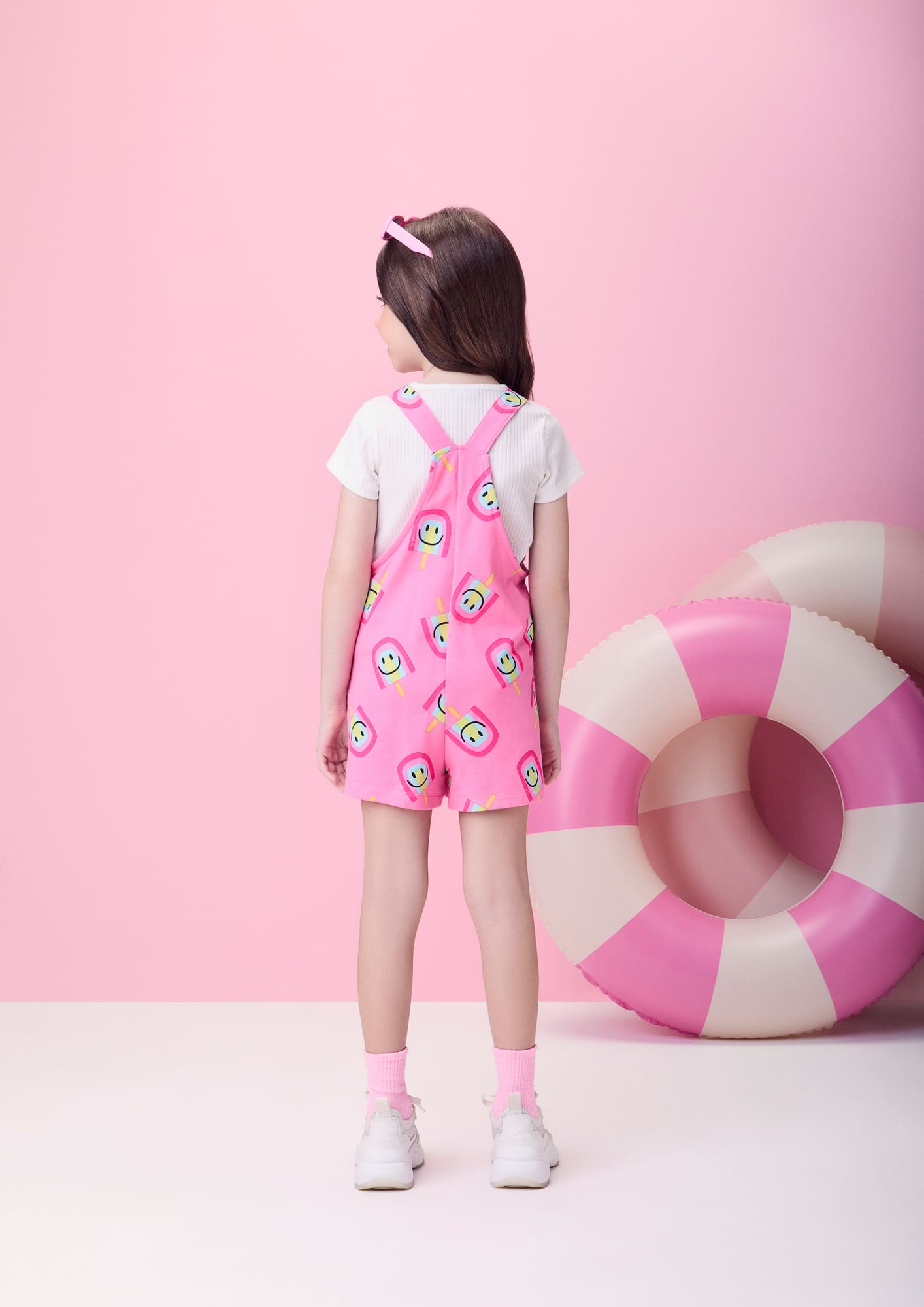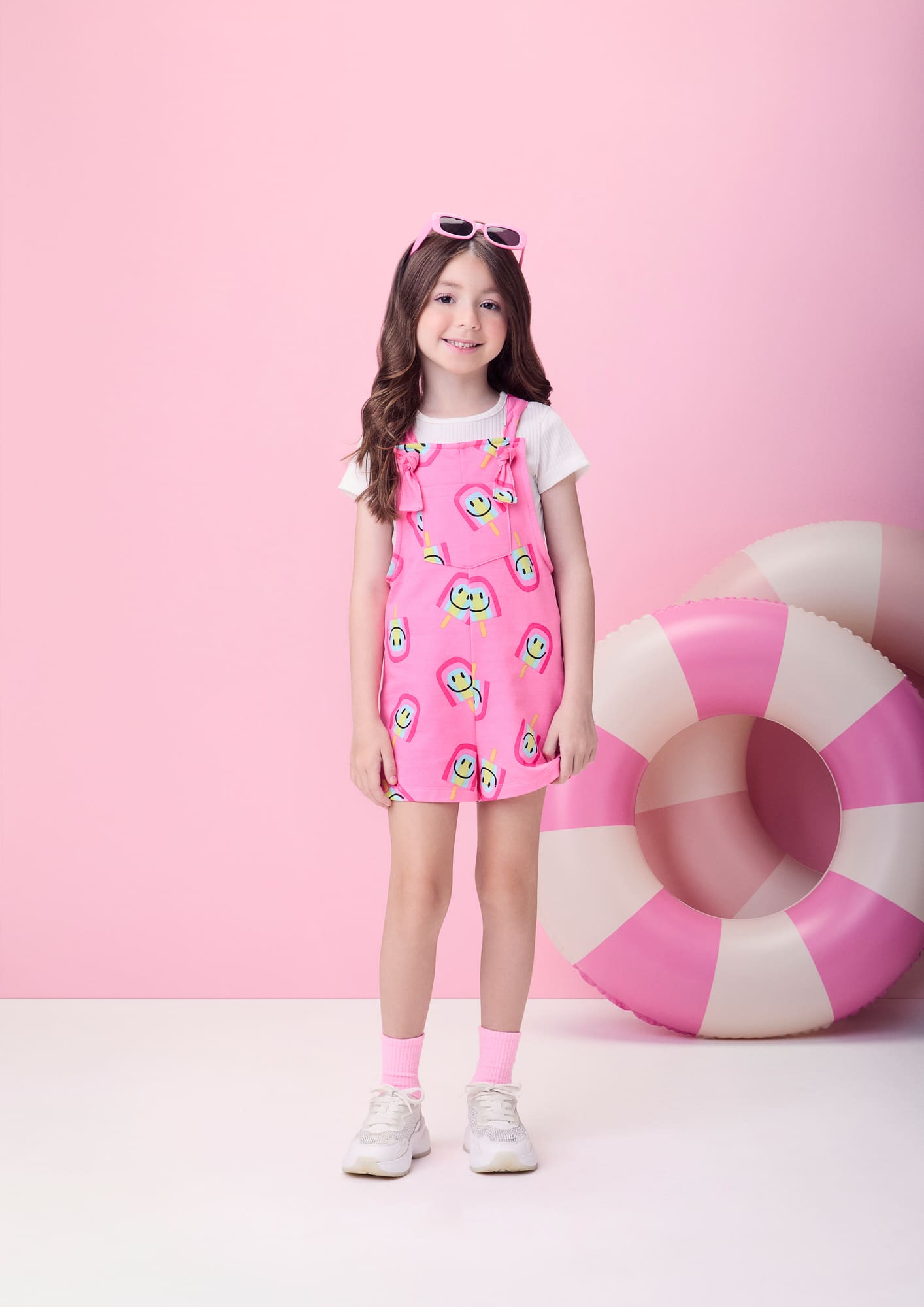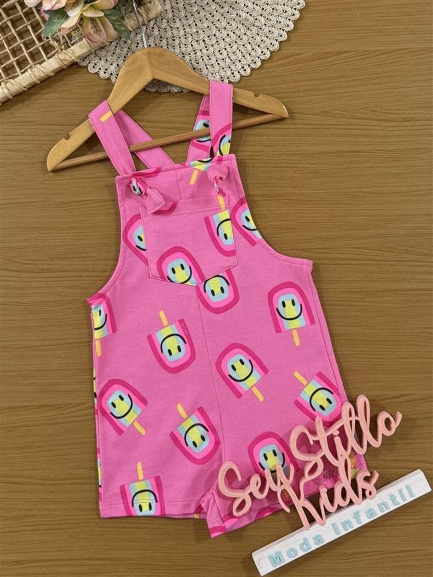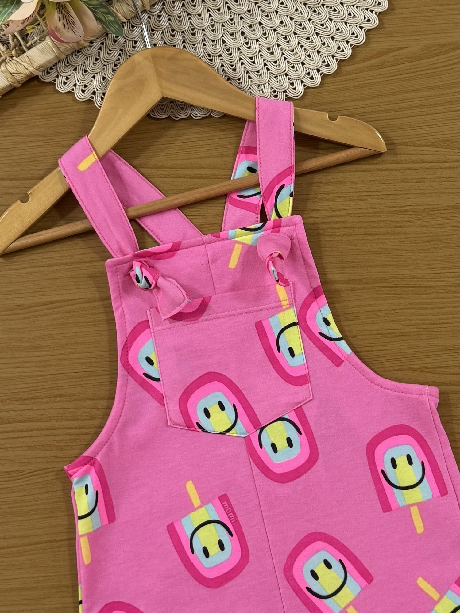 Jardineira Infantil Momi Verão Rosa Sorvetinho Feliz