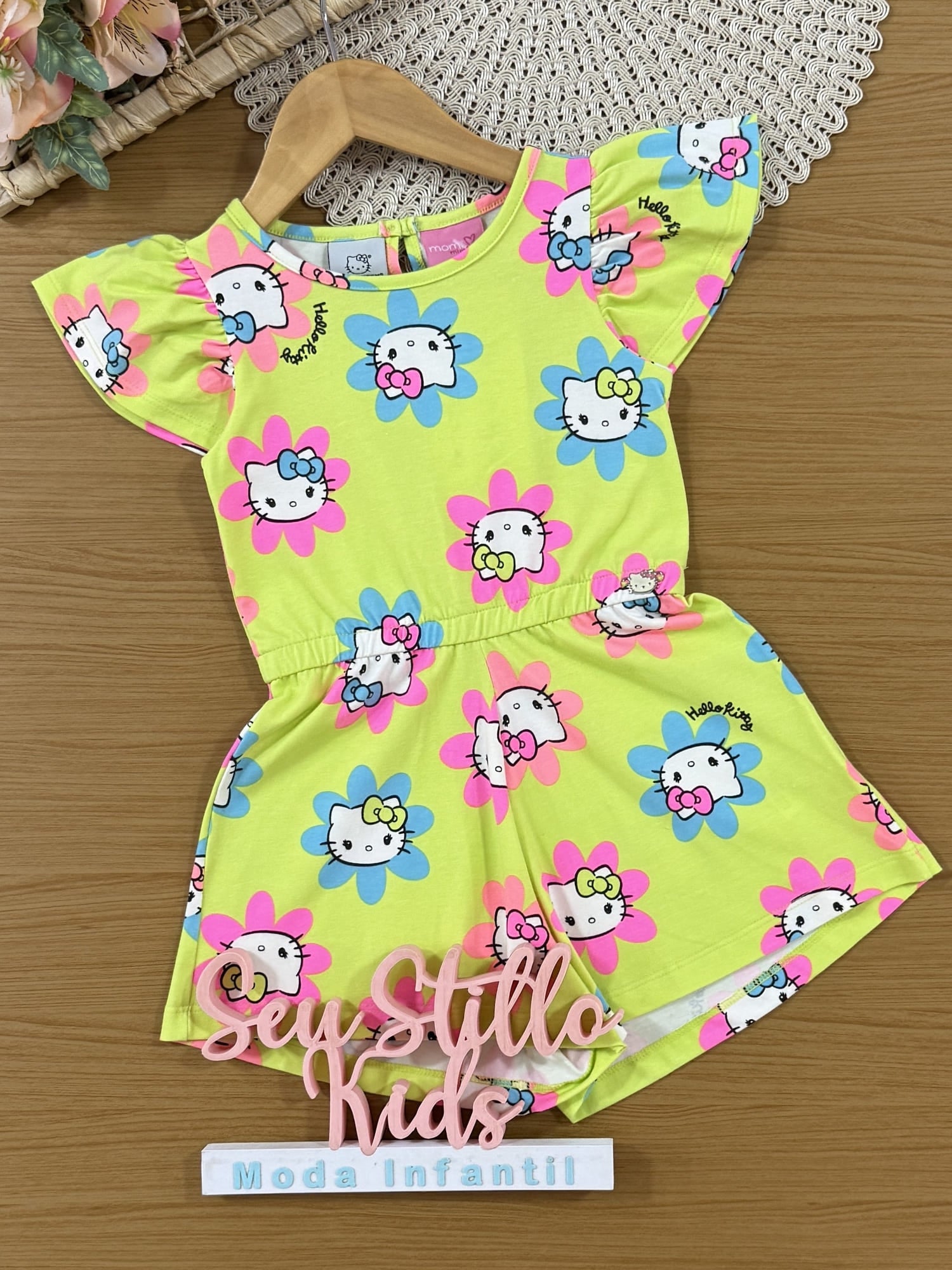 Macação Curto Infantil Momi Verão Florzinha Hello Kitty Verde