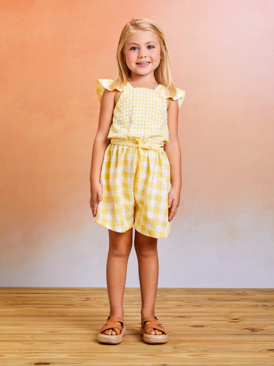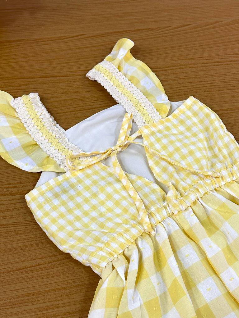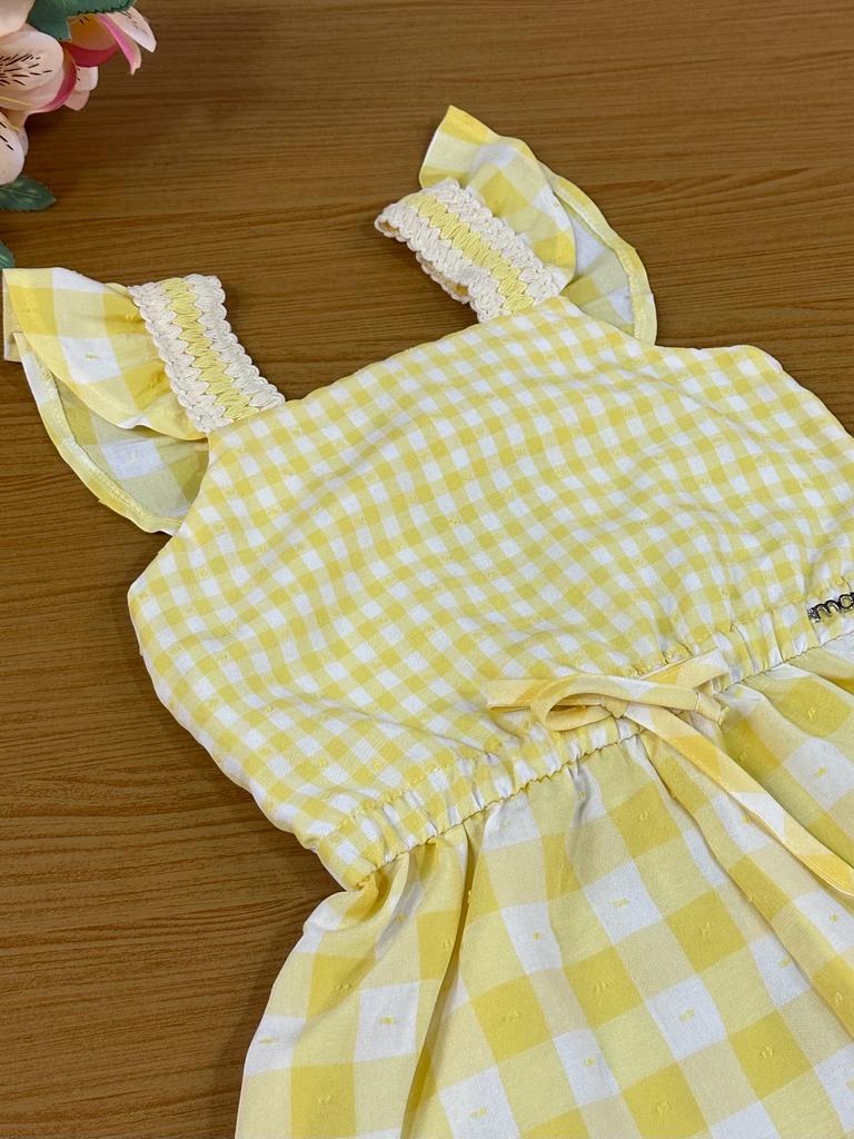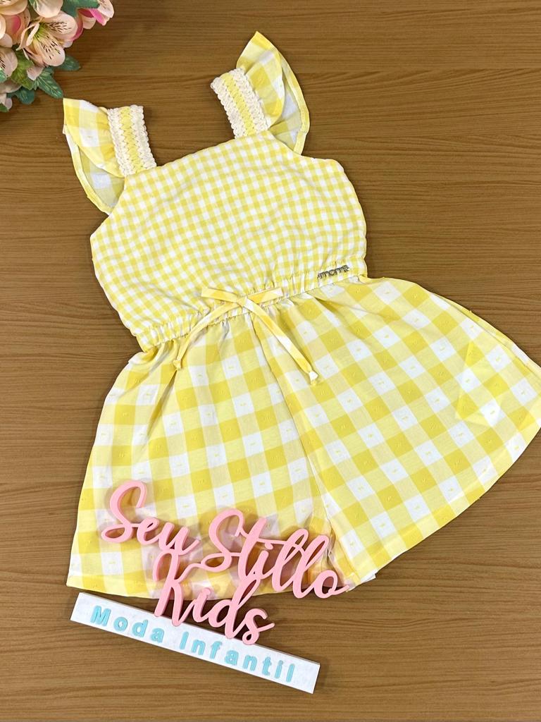 Macaquinho Infantil Momi Verão Amarelo Xadrez Piquenique