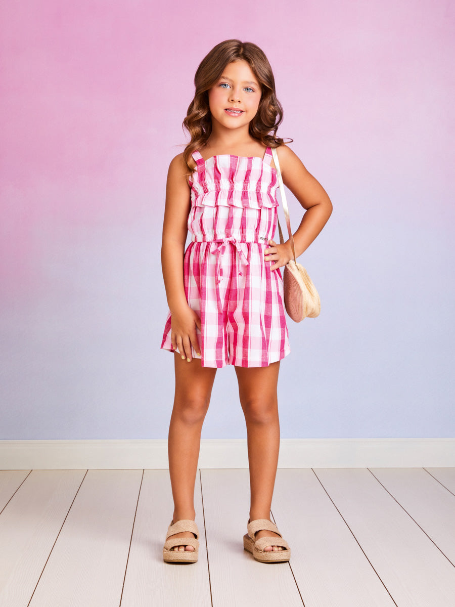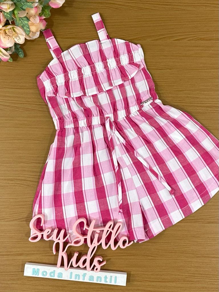Macaquinho Infantil Momi Verão Pink Xadrez