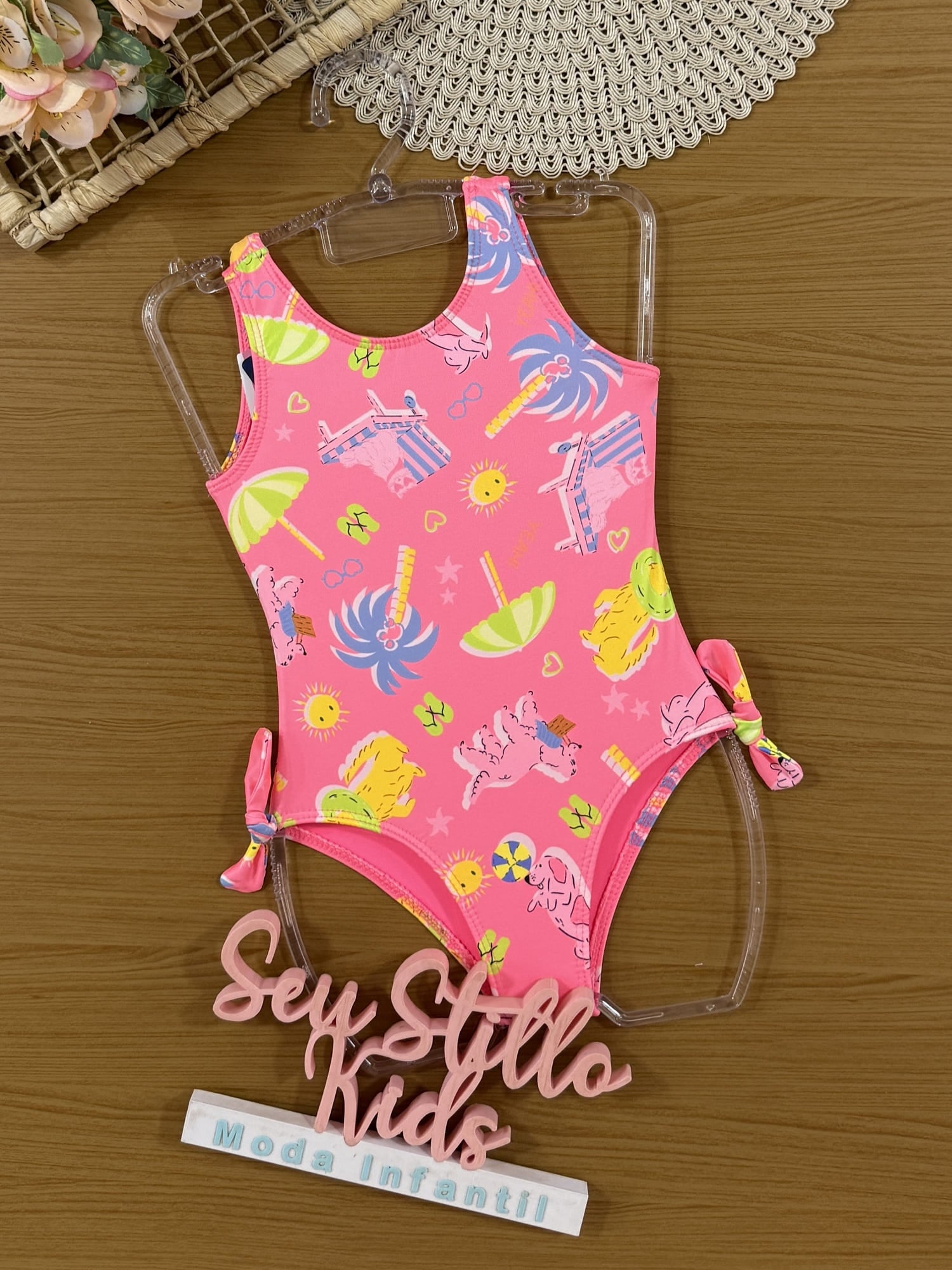 Maiô Infantil Cinti Verão Rosa Animais na Praia