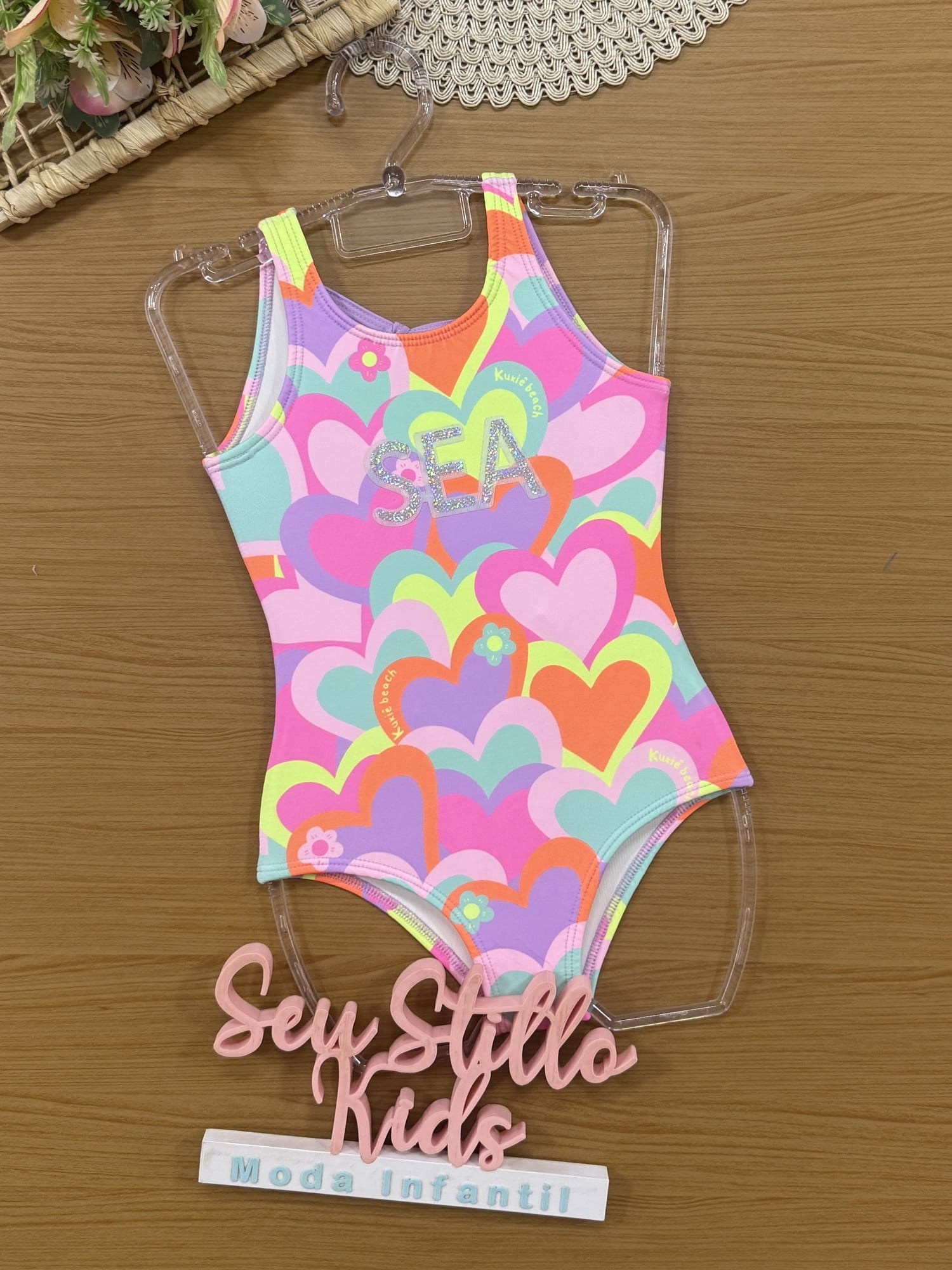 Maiô Infantil Kukiê Verão Colorido Corações Sea