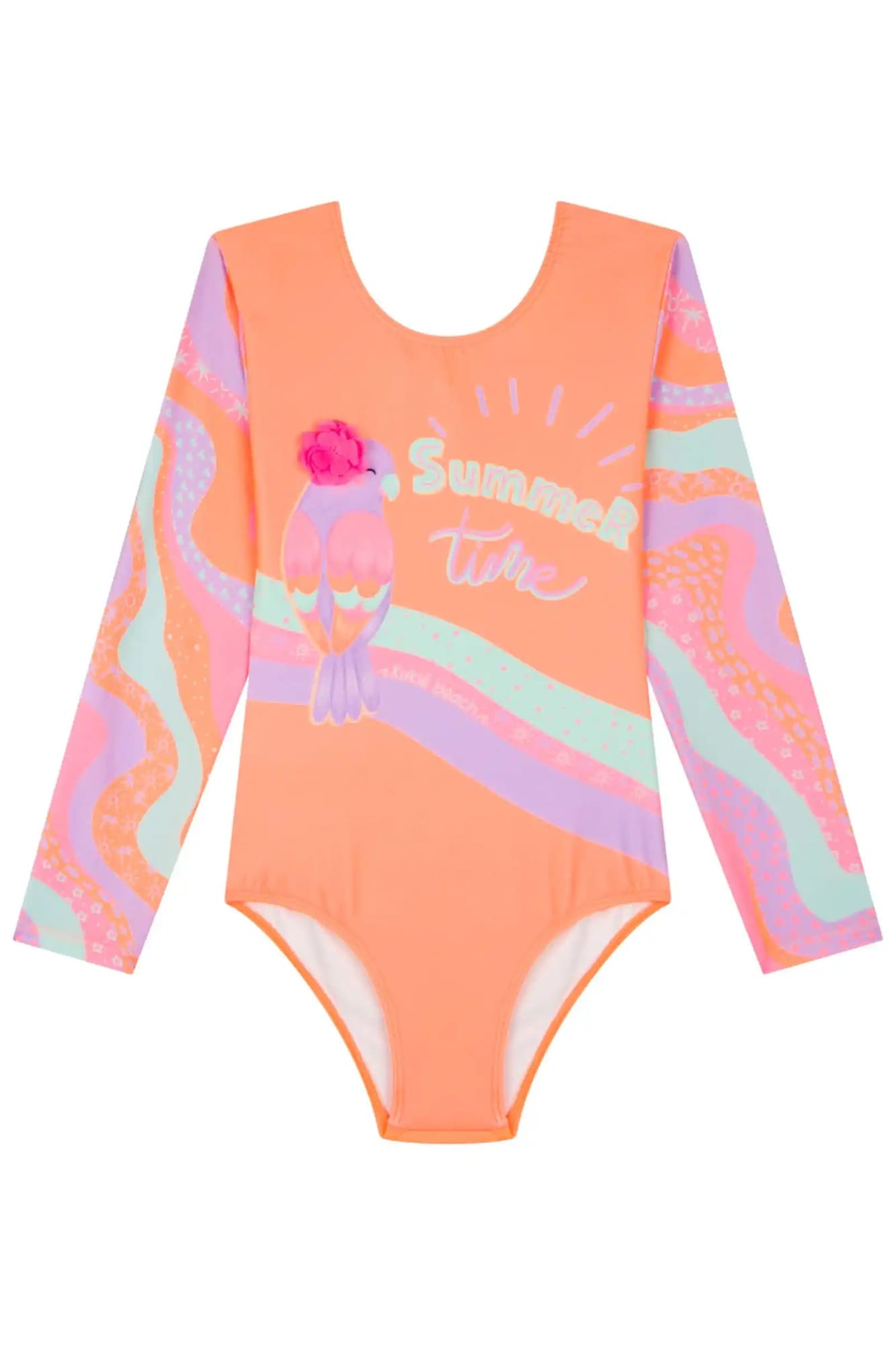 Maiô Infantil Kukiê Verão Laranja Passarinho