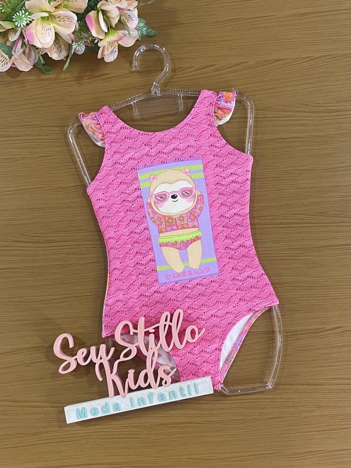 Maiô Infantil Kukie Verão Rosa Bichinho Preguiça