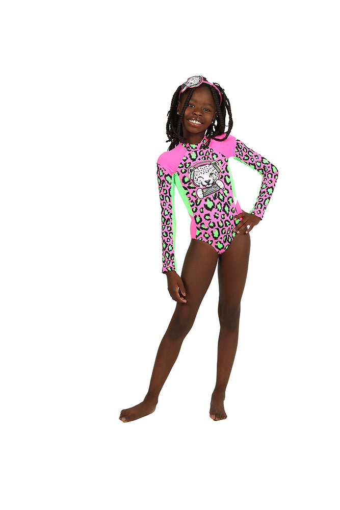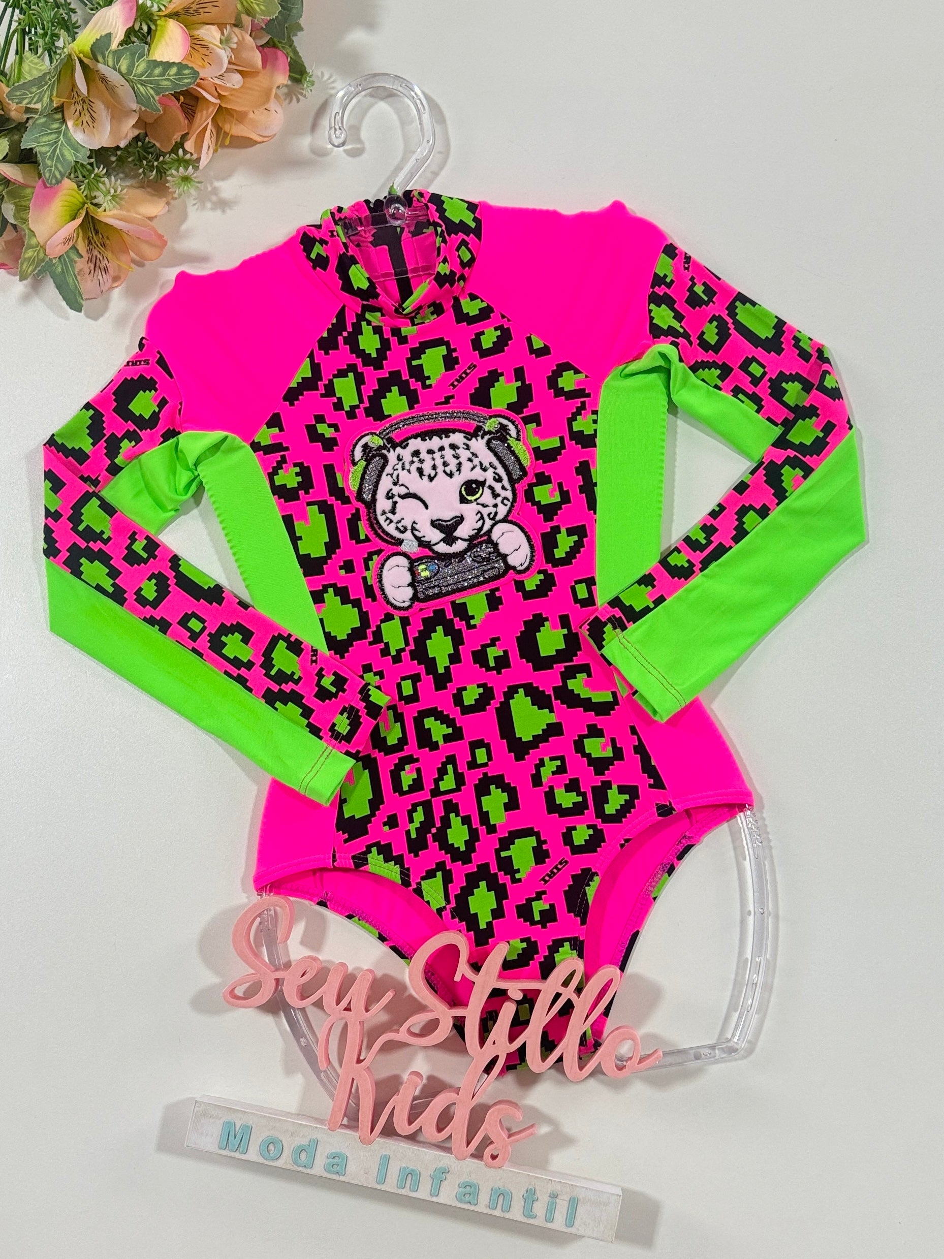 Maiô Infantil Siri Kids Manga Longa Carol Rosa Onça Pixel 39197