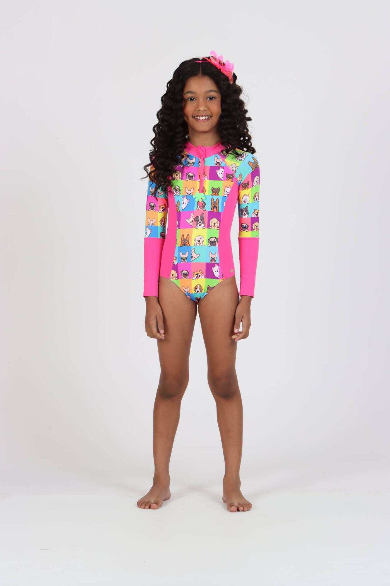 Maiô Infantil Siri Kids Manga Longa Lorena Funny Dog 40175
