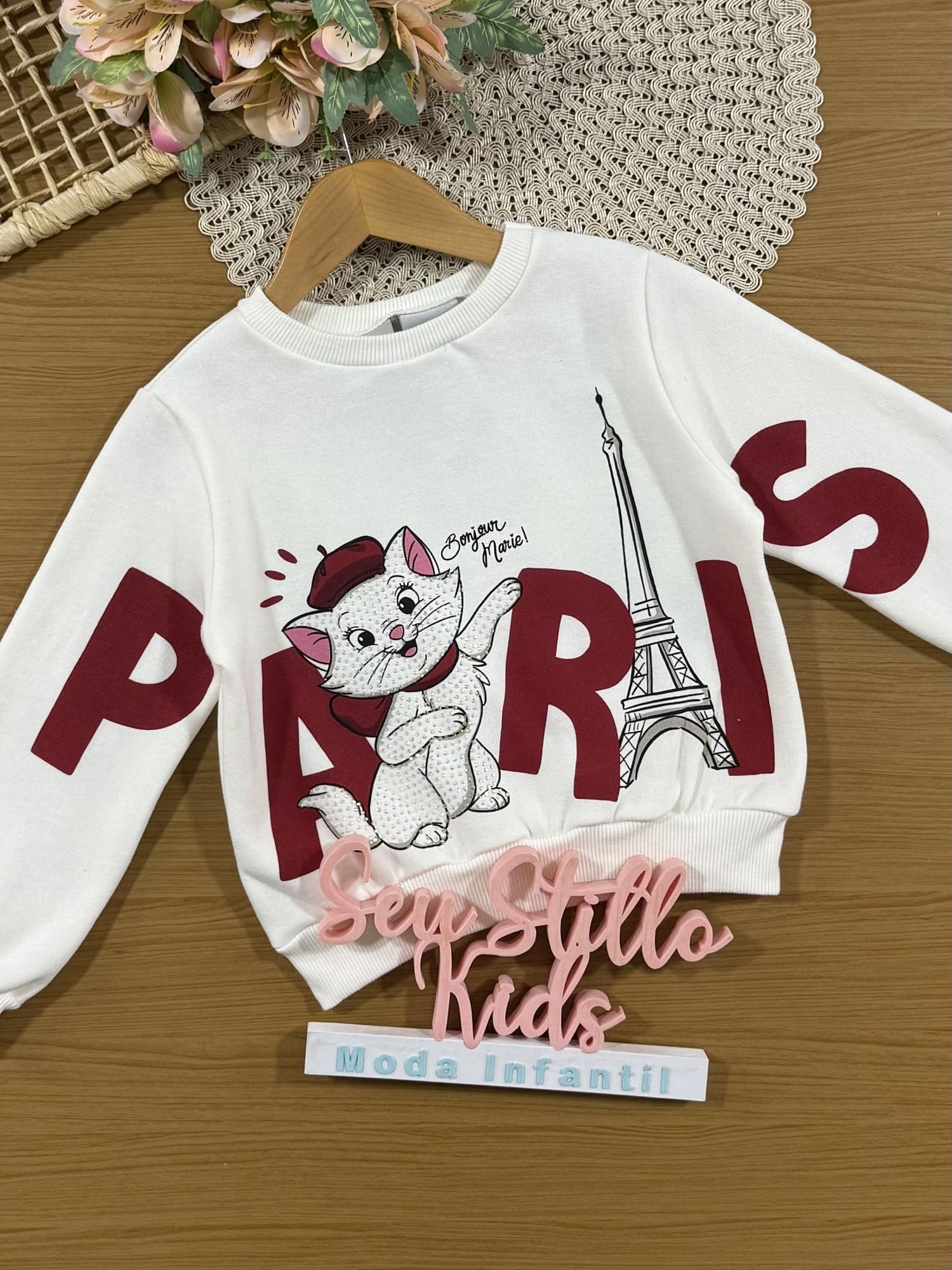 Moletom Infantil Momi Inverno Flanelado Branco Marie Paris Disney