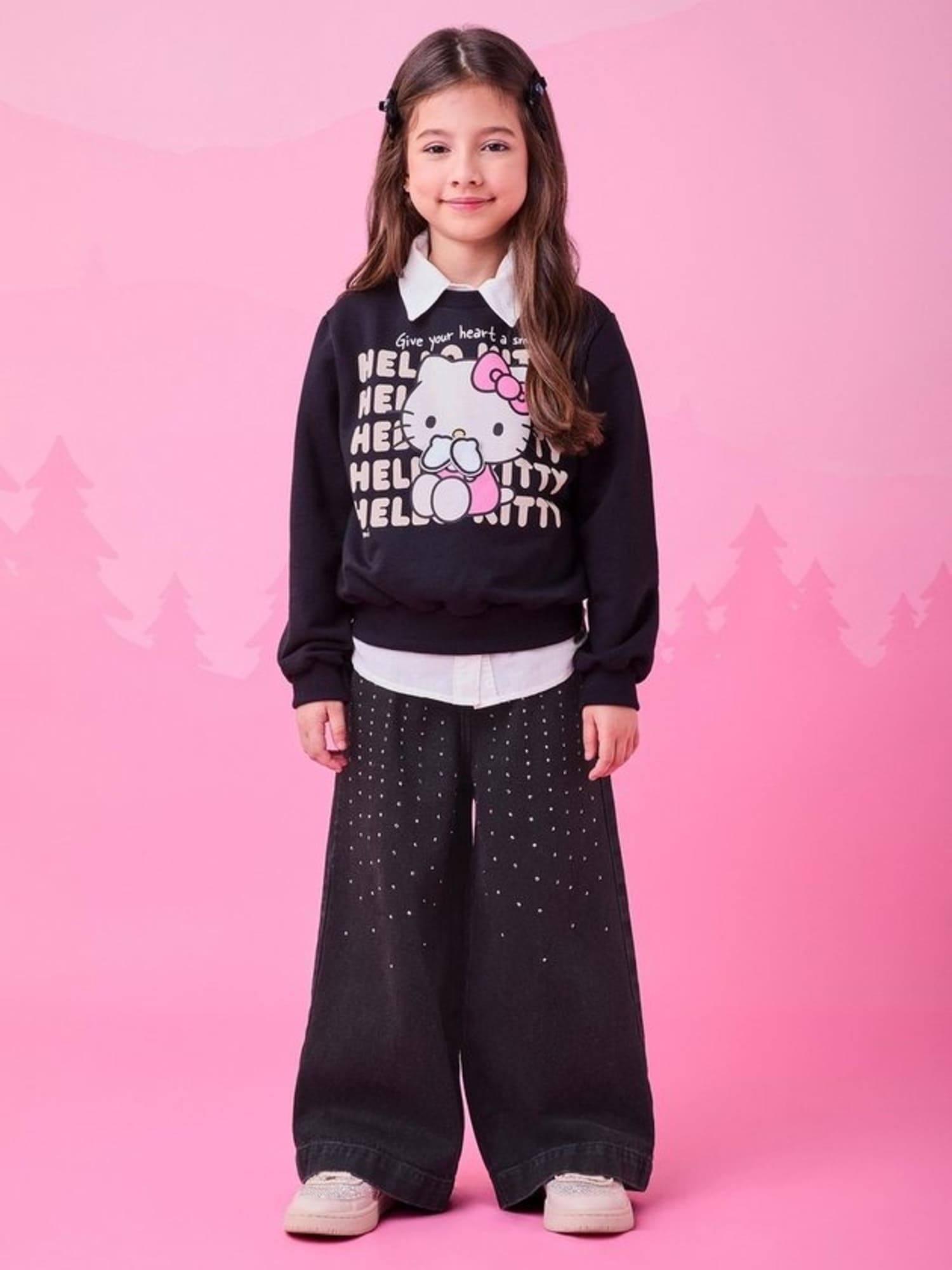 Moletom Infantil Momi Inverno sem Flanela Preto Hello Kitty