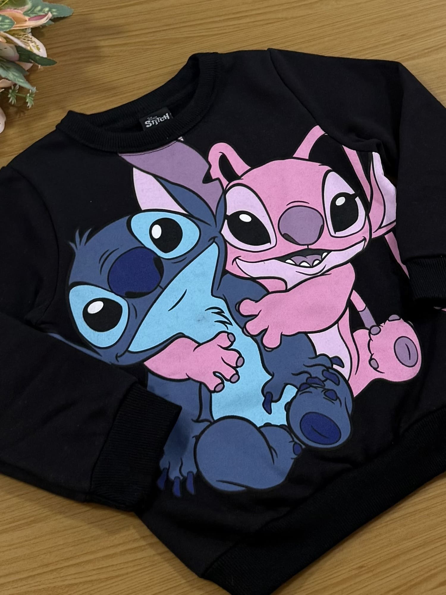 Moletom Infantil Stitch Preto Flanelado Disney Brandili