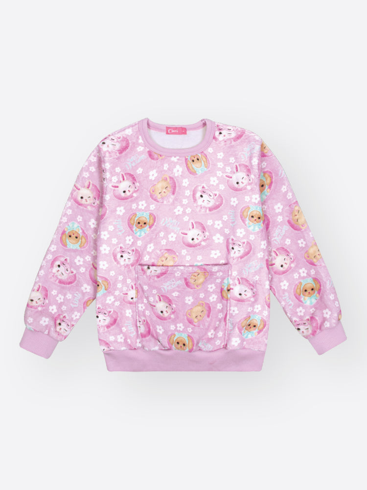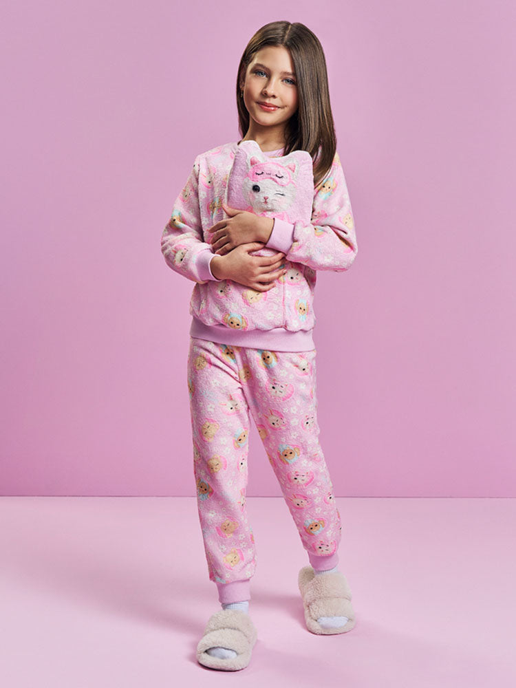 Pijama Infantil Cinti Inverno com Calça e Casaco Rosa Bichinhos