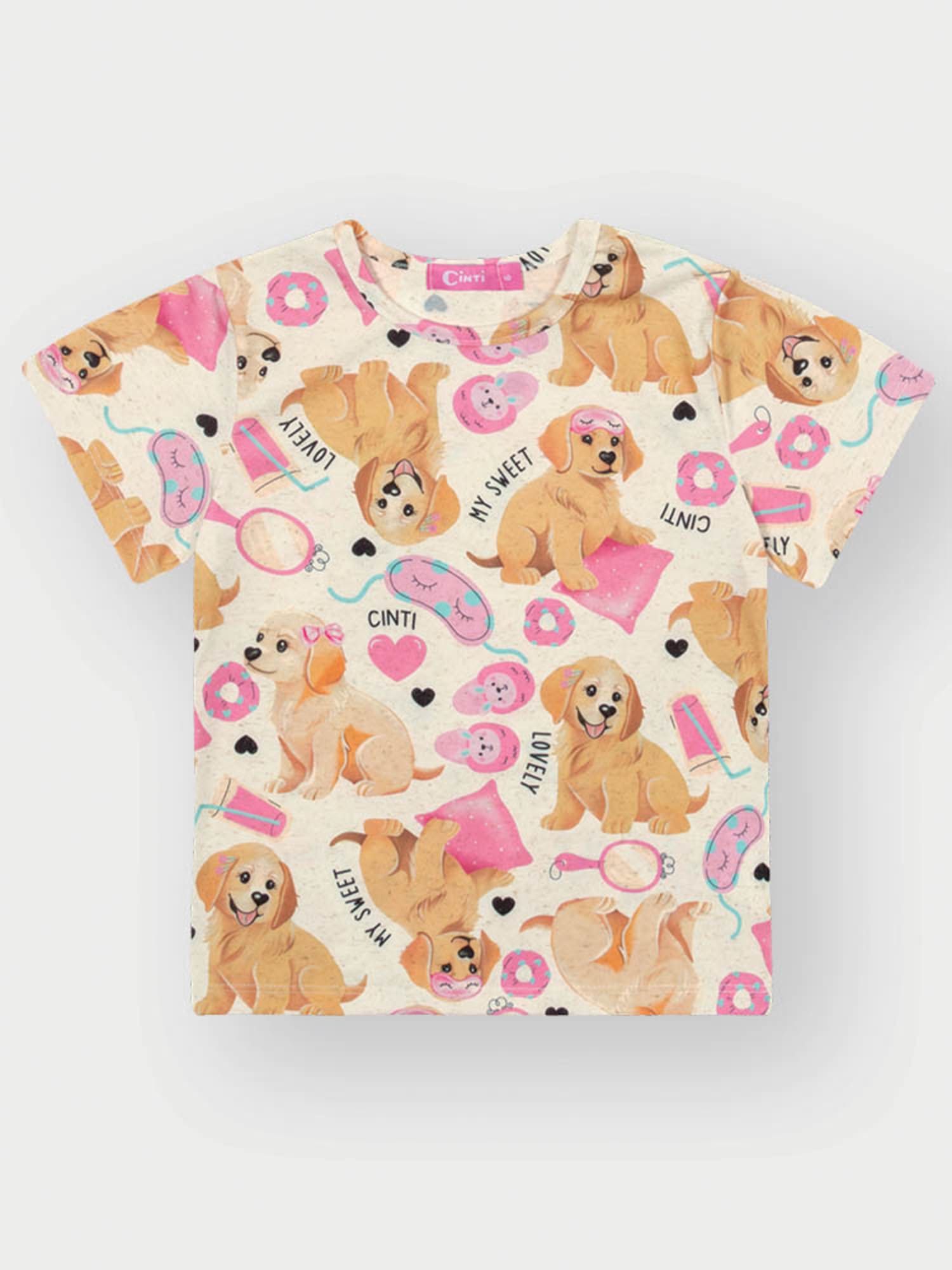 Pijama Infantil Cinti Verão com Calça e Blusa Off White Cachorrinhos