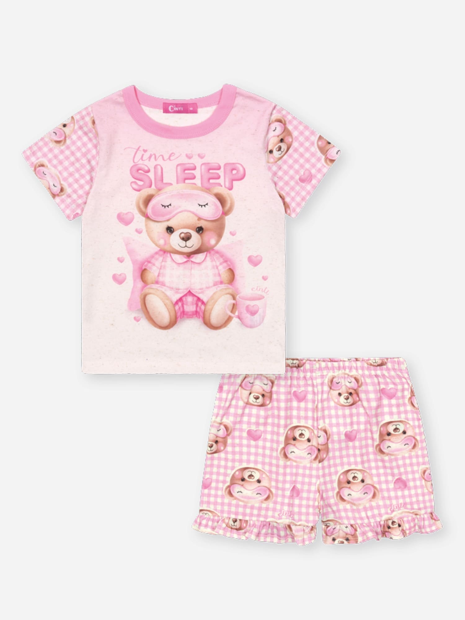 Pijama Infantil Cinti Verão com Shorts e Blusa Rosa Ursinha