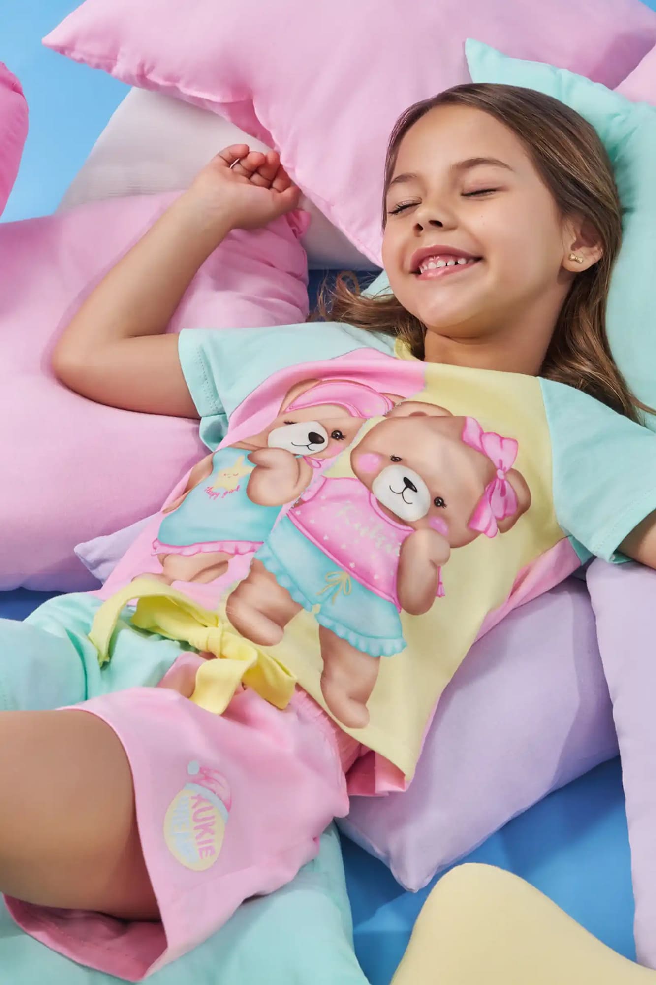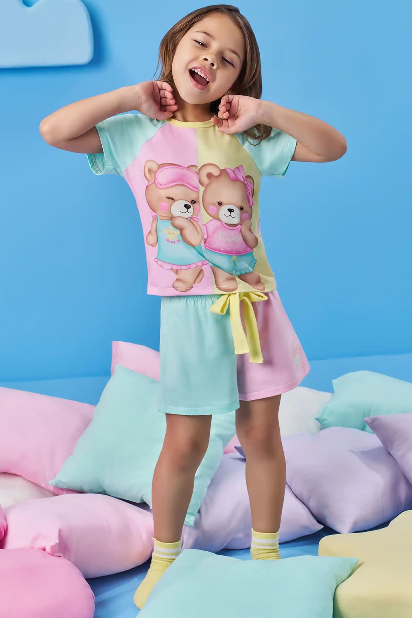 Pijama Infantil Kukiê Verão Com Shorts e Blusa Colorida Ursinhas