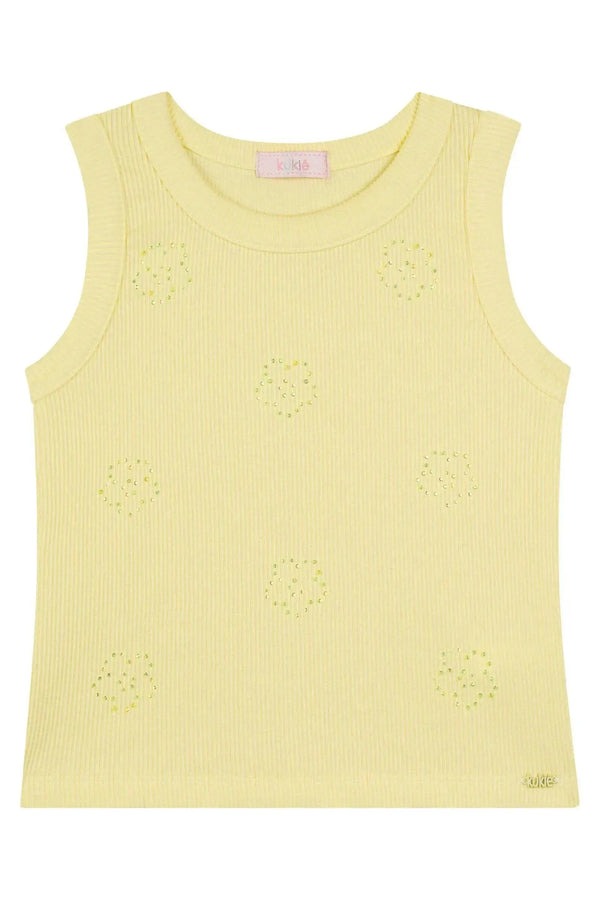 Regata Infantil Kukiê Verão Amarela com Strass