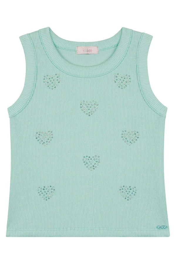 Regata Infantil Kukiê Verão Verde com Strass Corações