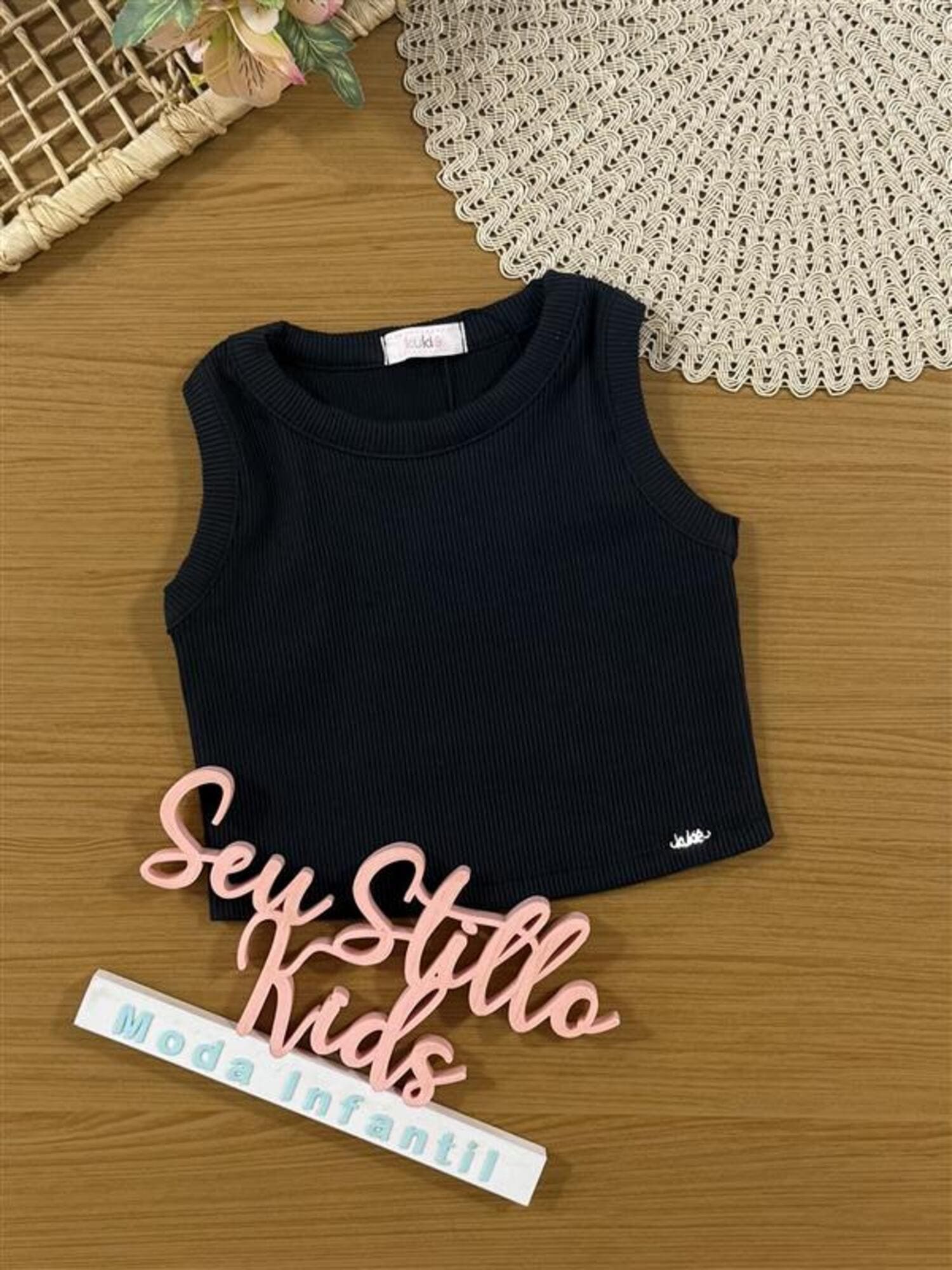 Regata Infantil Kukiê Verão Canelada Preta