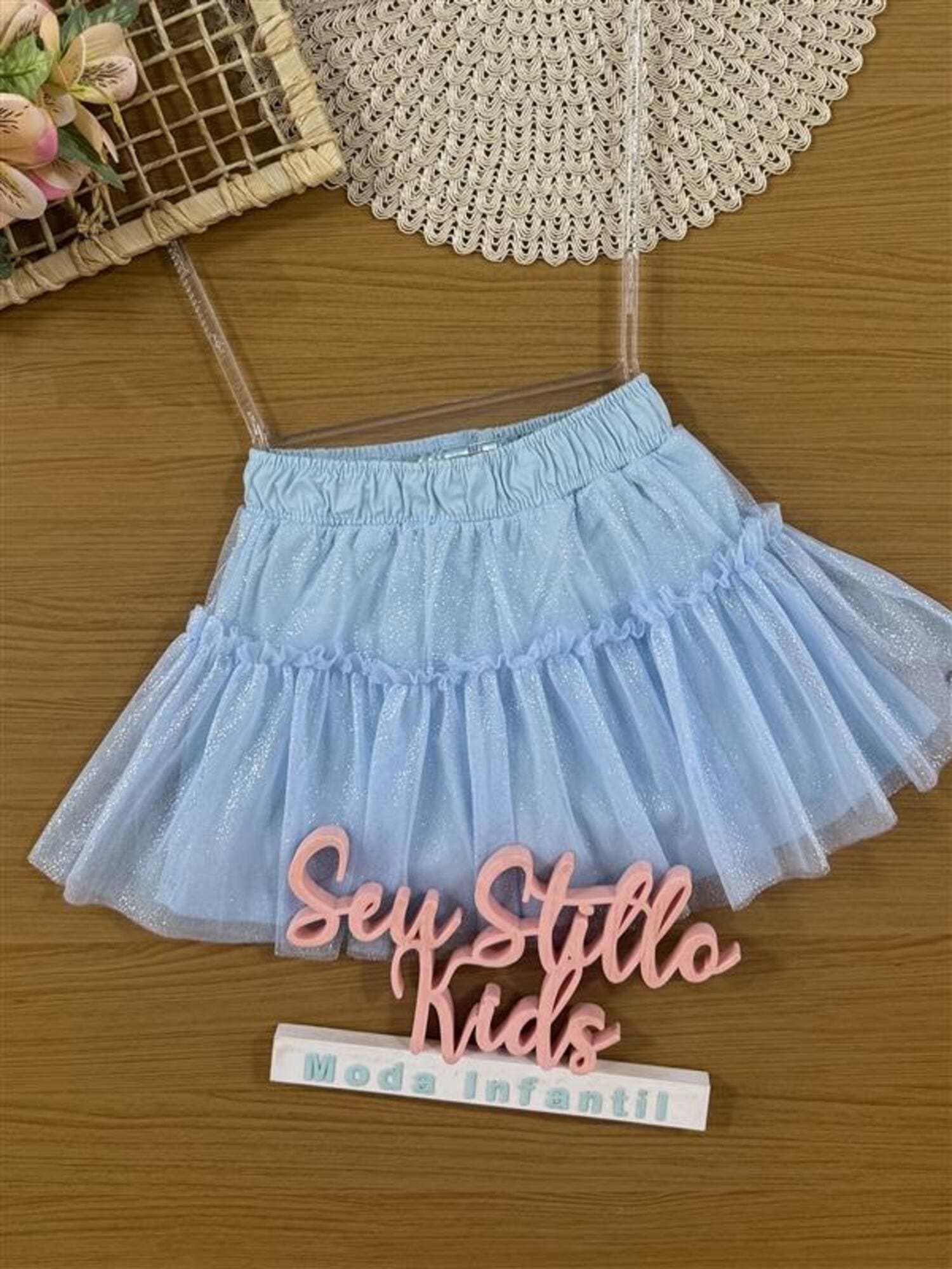 Saia Infantil Cinti Verão Azul em Tule com Brilho