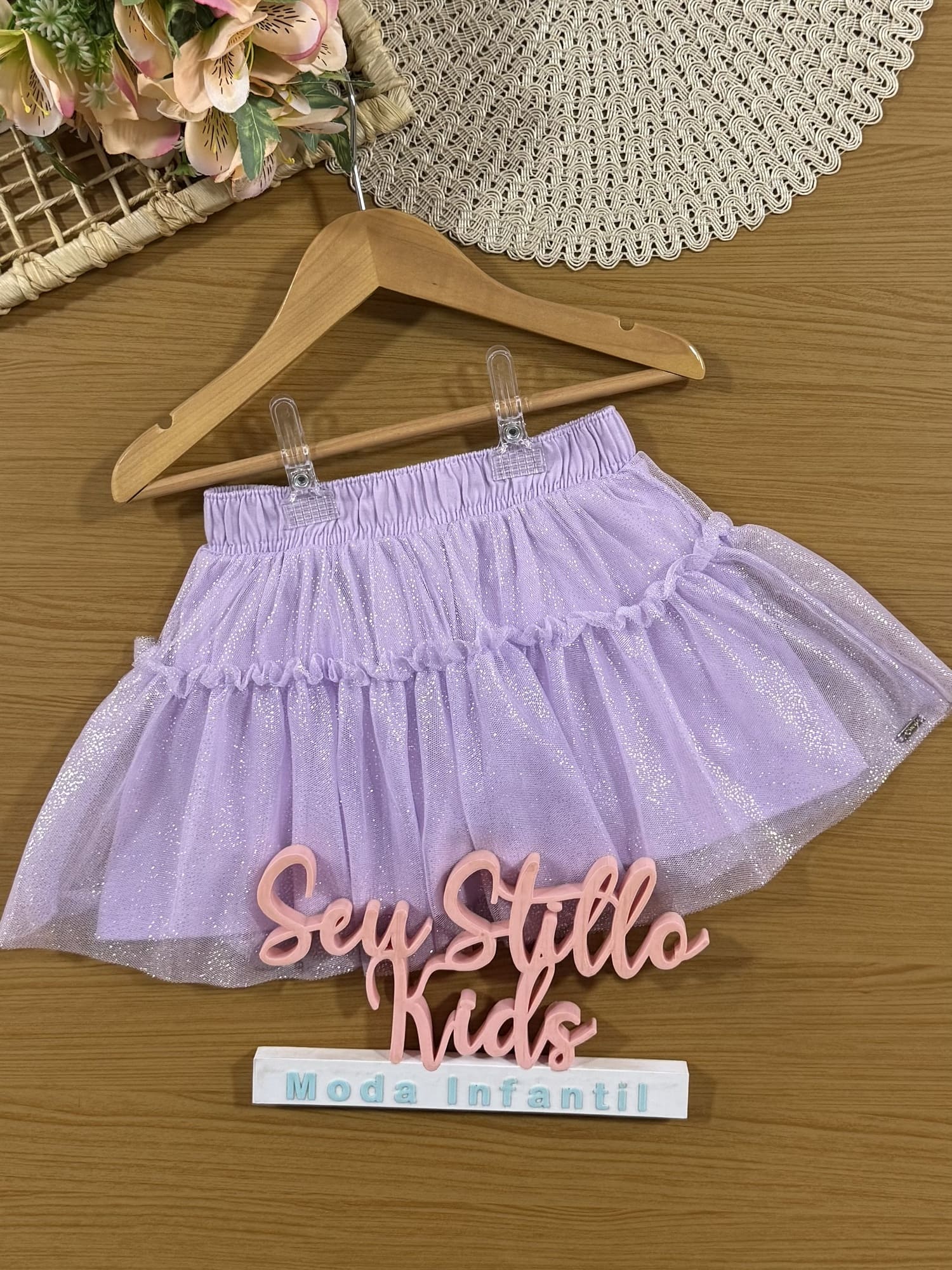 Saia Infantil Cinti Verão Lilás em Tule com Brilho