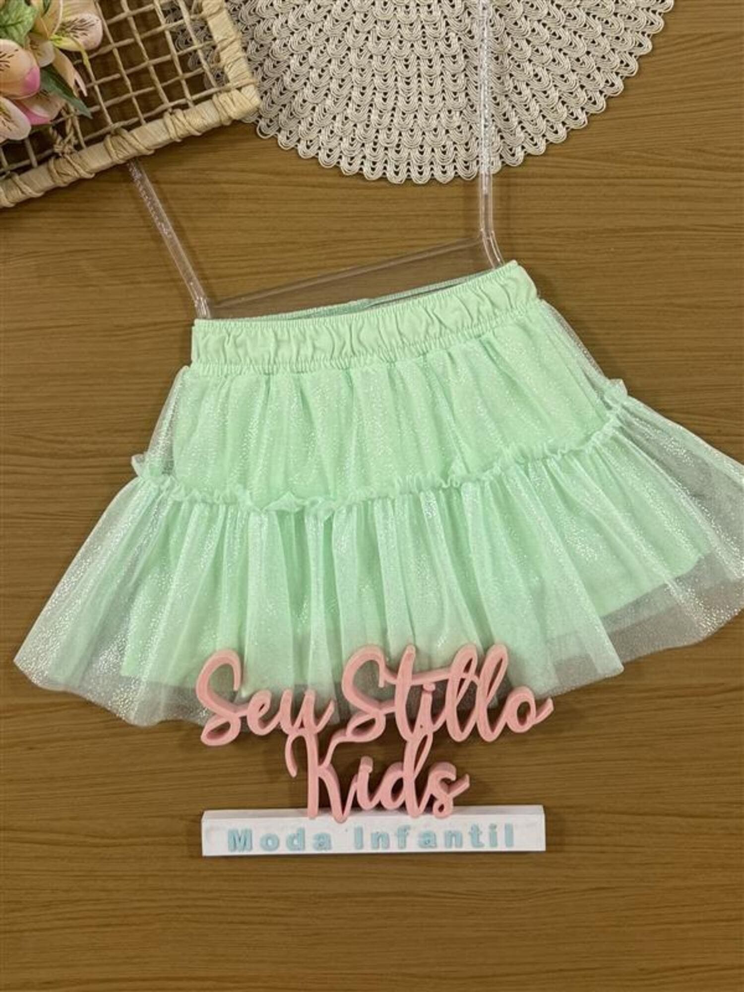 Saia Infantil Cinti Verão Verde em Tule com Brilho
