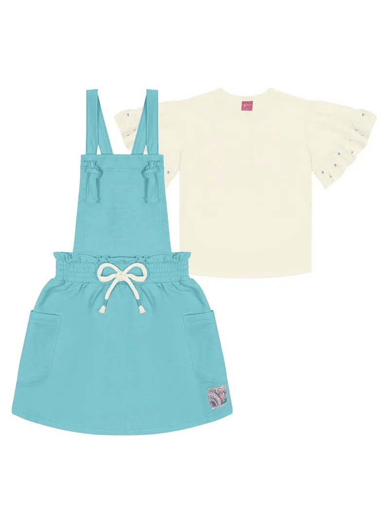 Salopete Infantil Cinti Verão Azul com Blusa Estrela