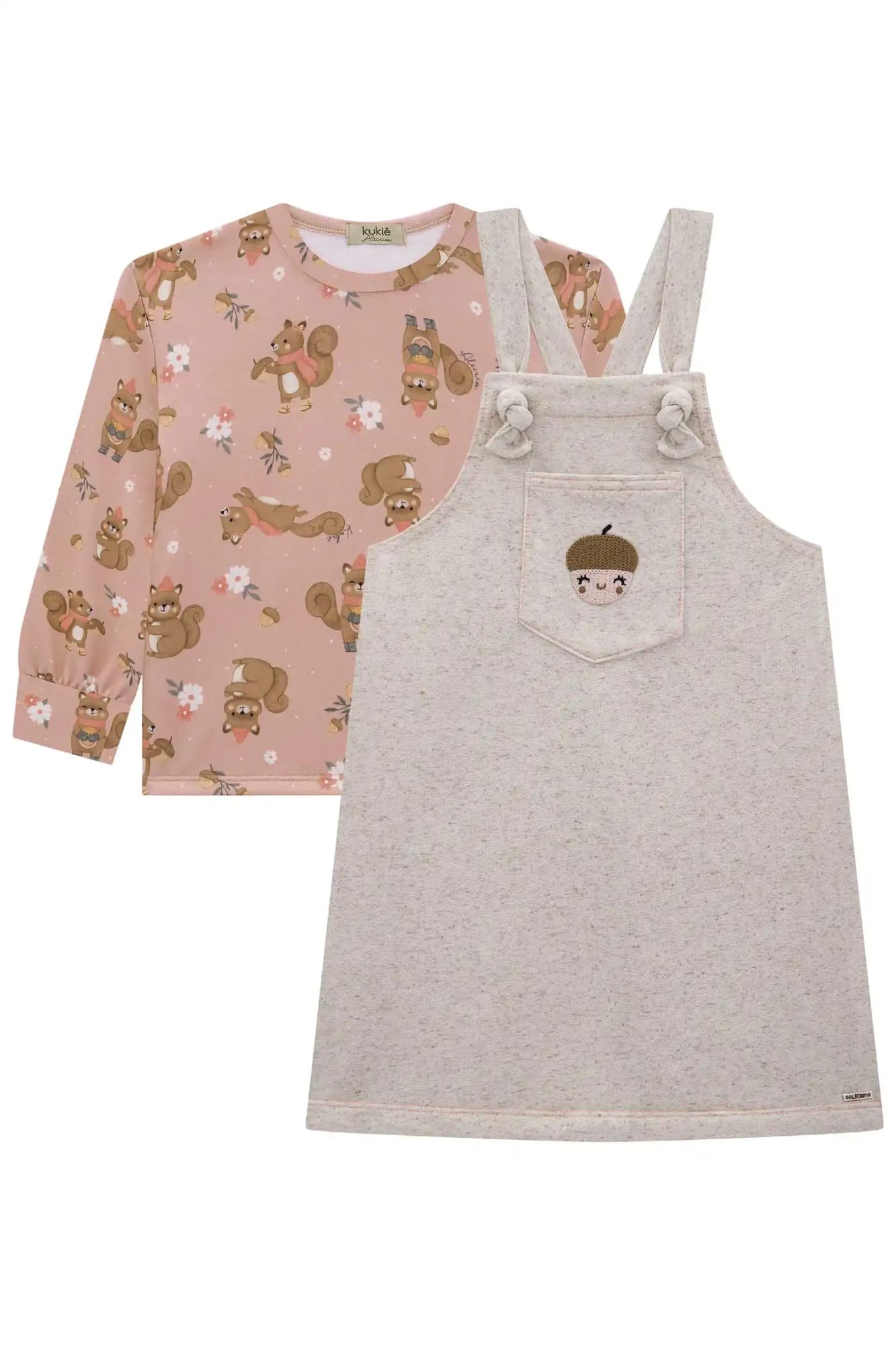 Salopete Infantil Kukiê Inverno com Blusa Térmica Rosa Esquilinho