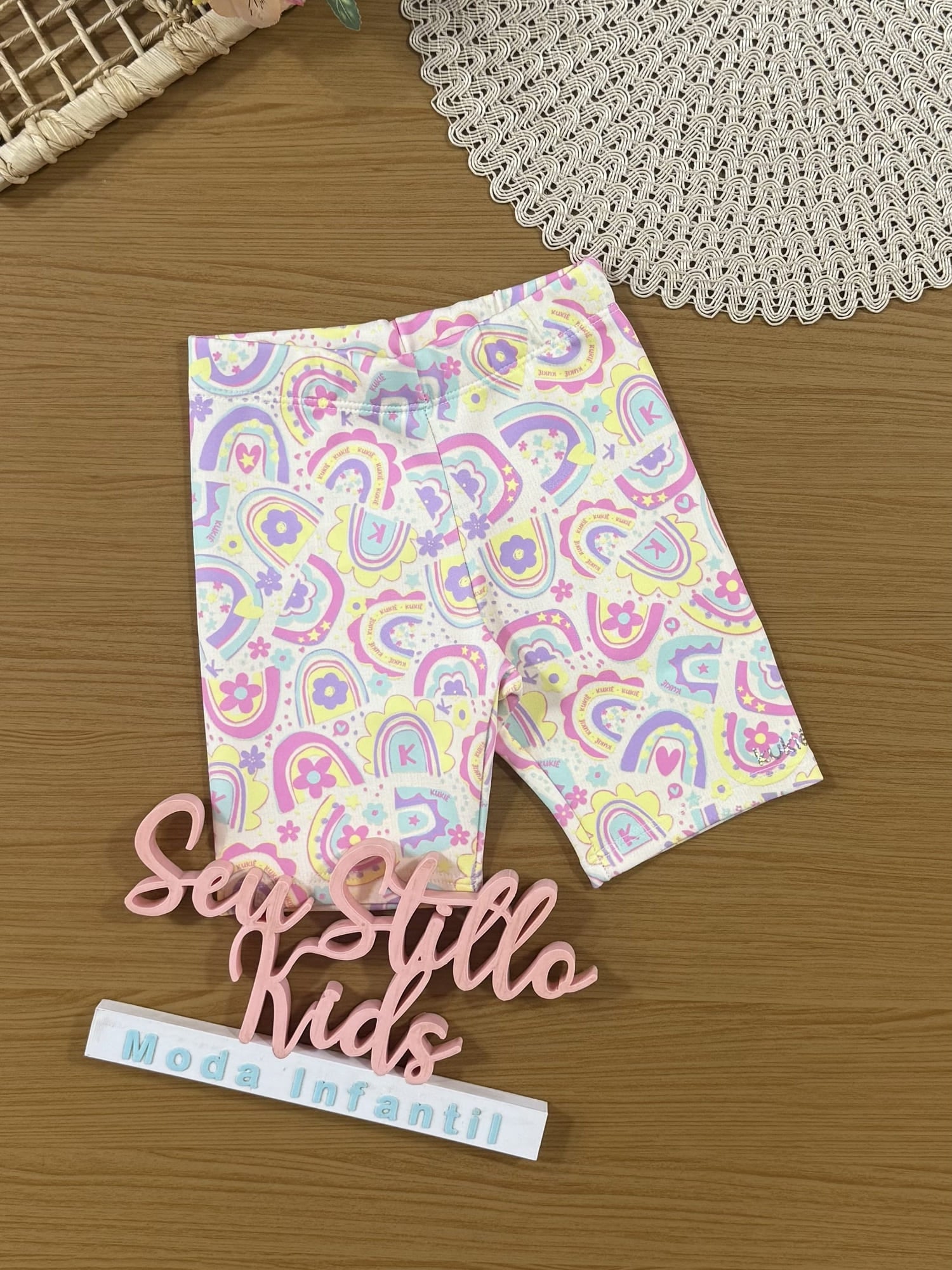 Shorts Infantil Kukiê Verão Ciclista Off White Arco-íris