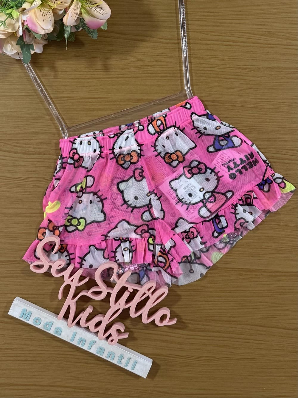 Shorts Infantil Momi Verão Tule Saida de Praia Hello Kitty