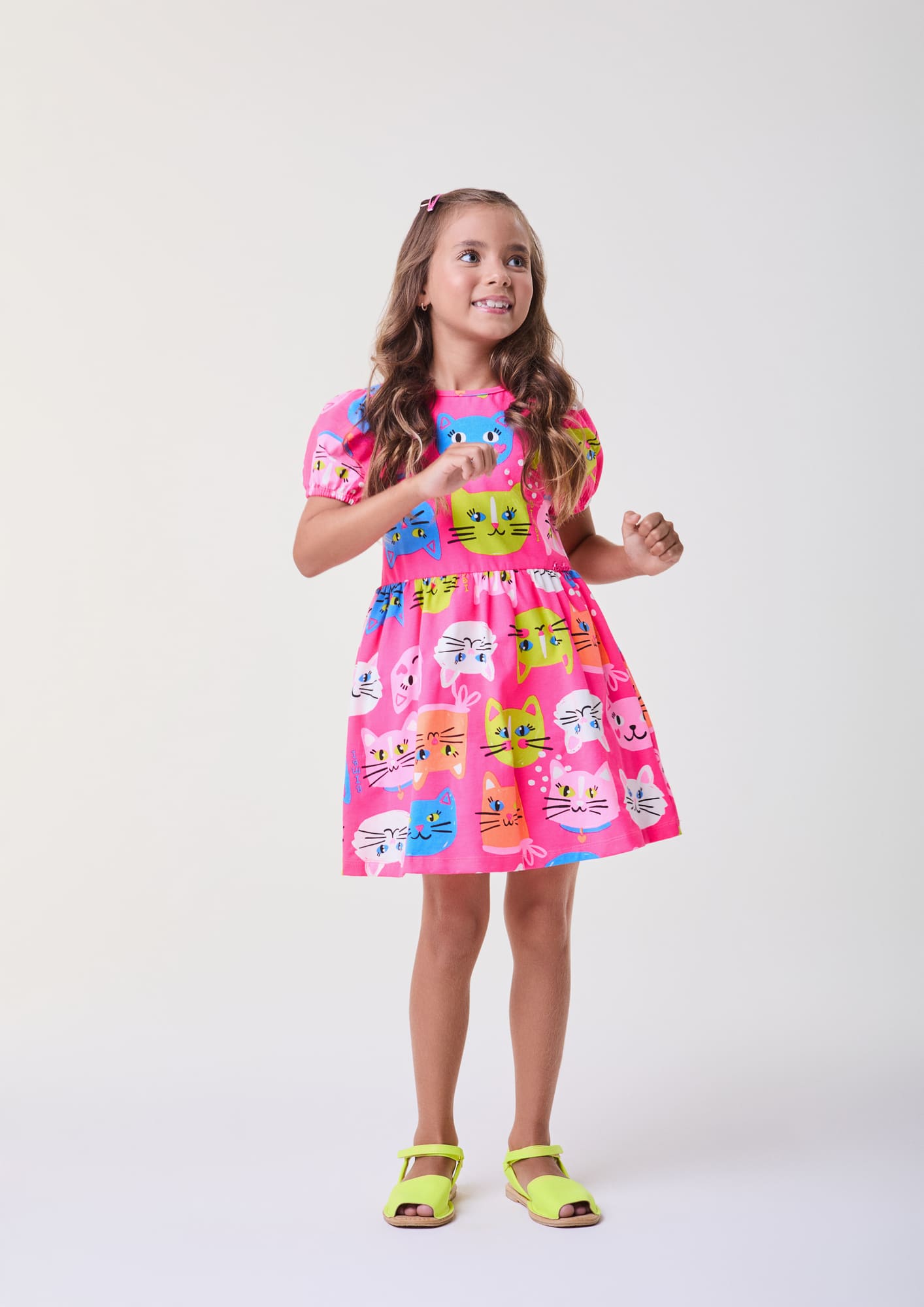 Vestido Infantil Bimbi Verão Rosa Gatinhas