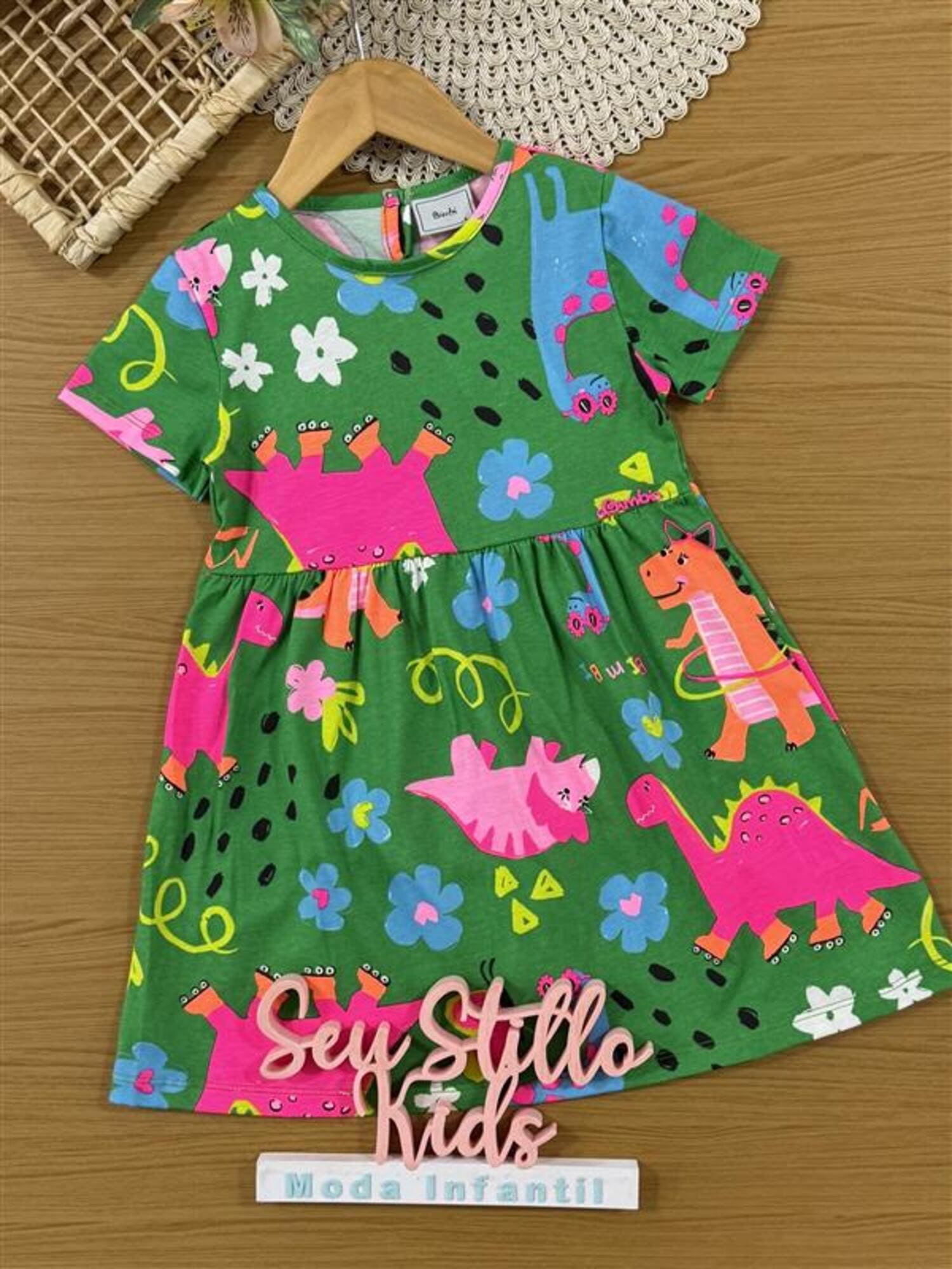 Vestido Infantil Bimbi Verão Verde Dinossauros