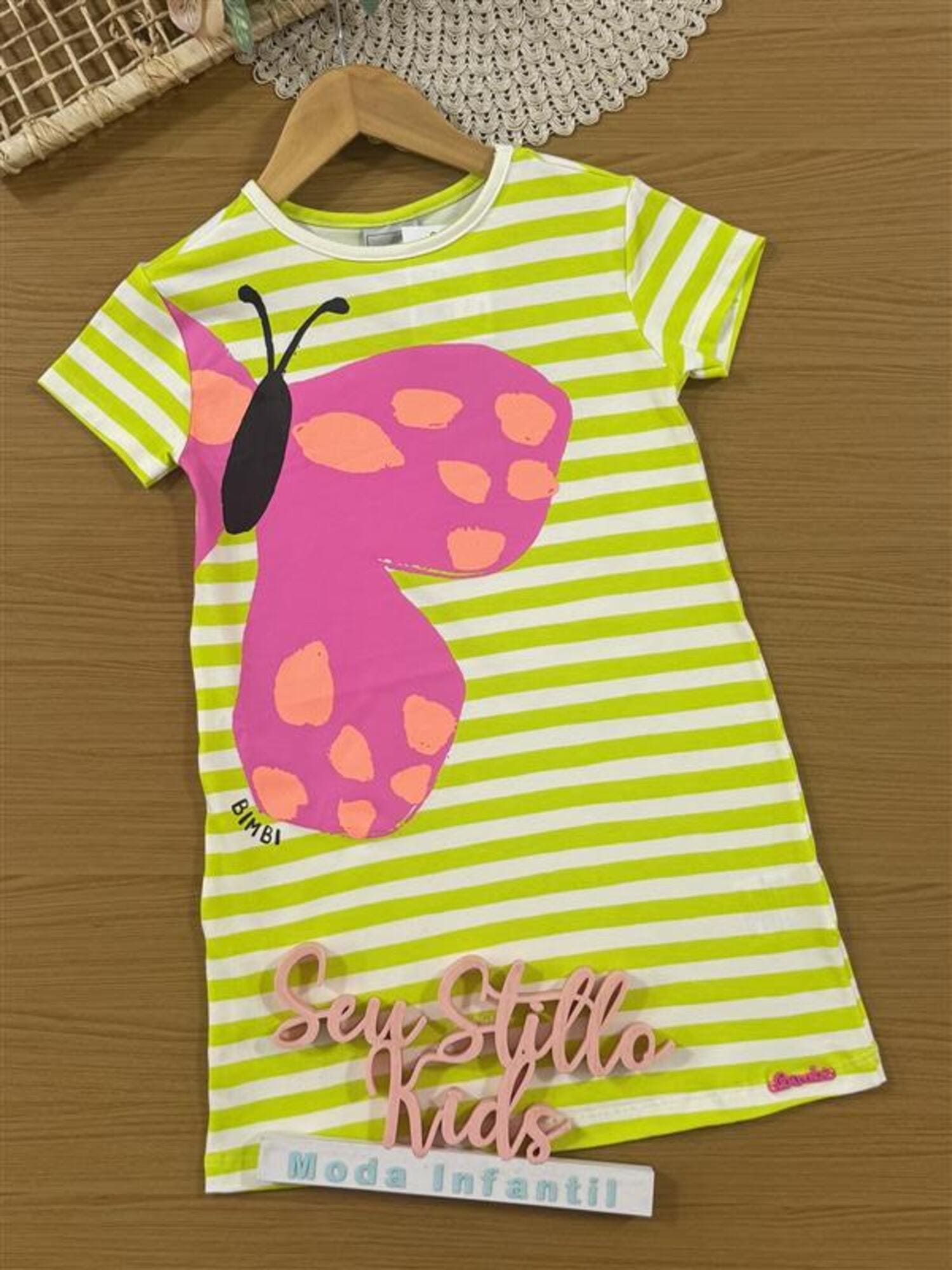 Vestido Infantil Bimbi Verão Verde Listrado Borboletinha