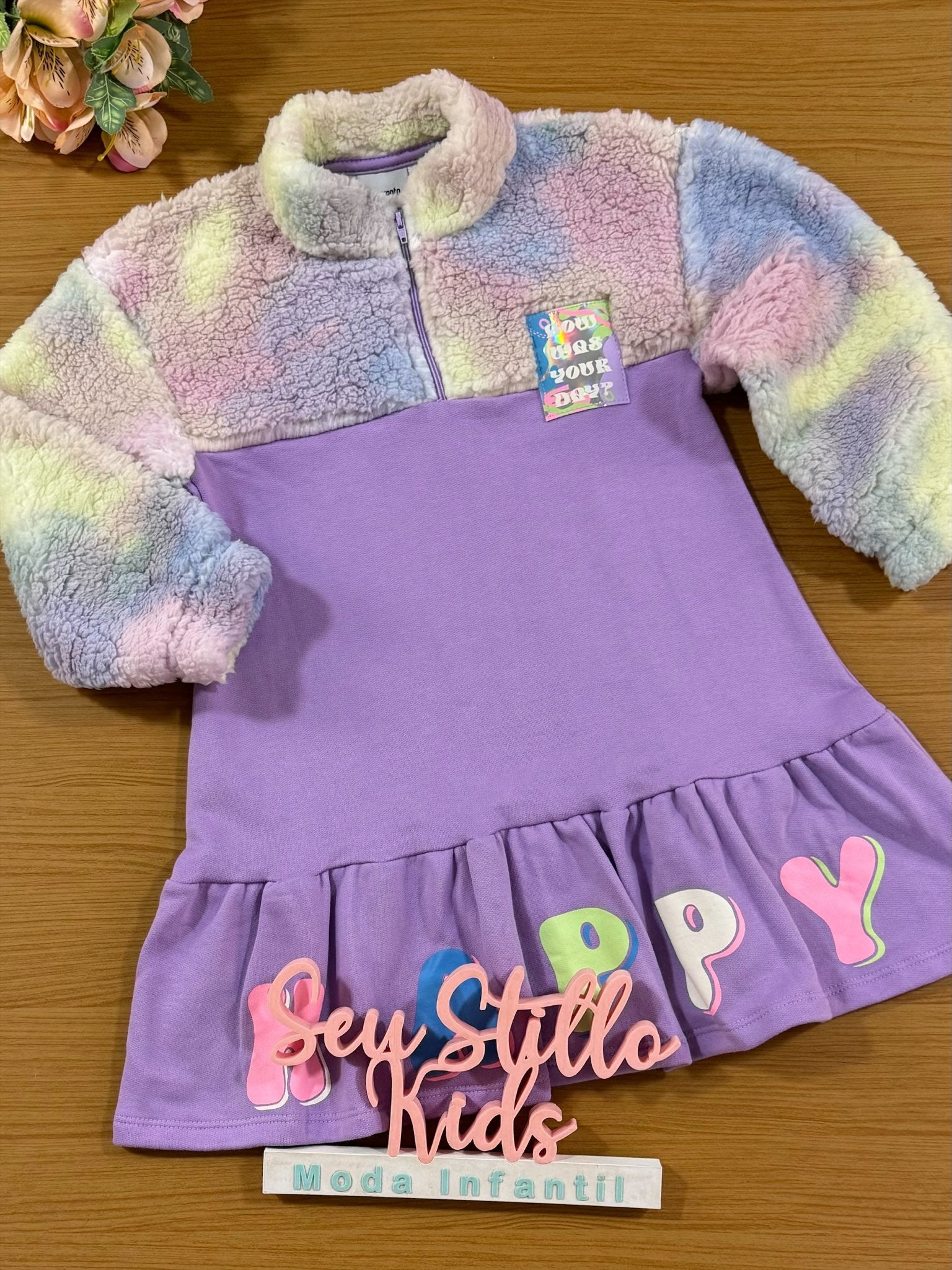 Vestido infantil Catavento Inverno Pelinhos Happy