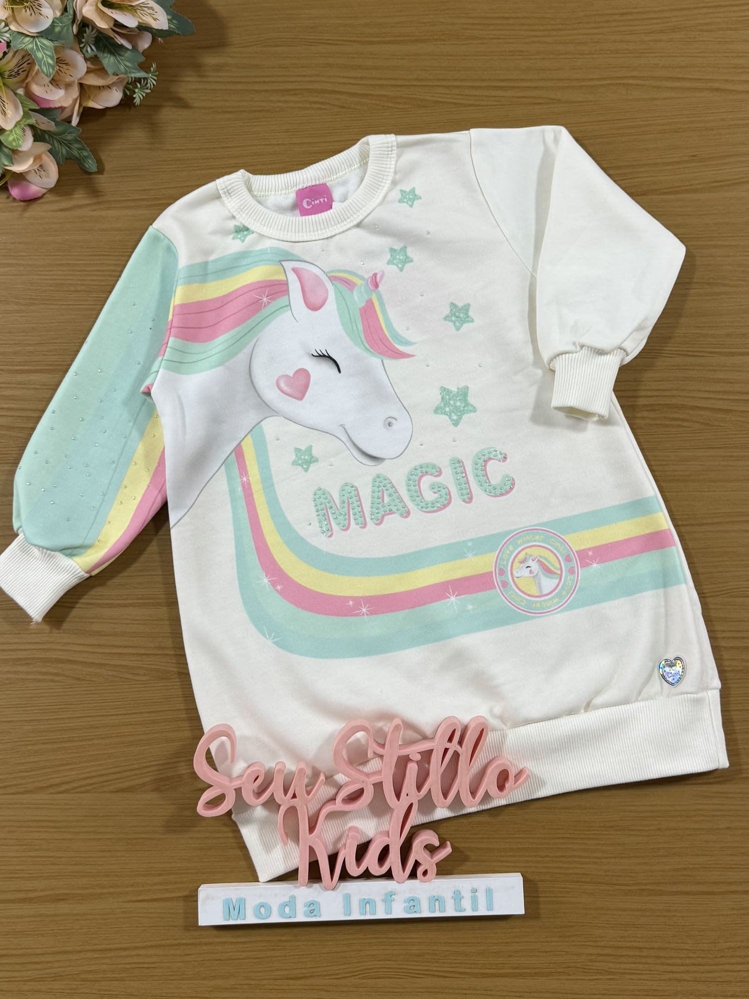 Vestido Infantil Cinti Inverno Flanelado Off White Unicórnio