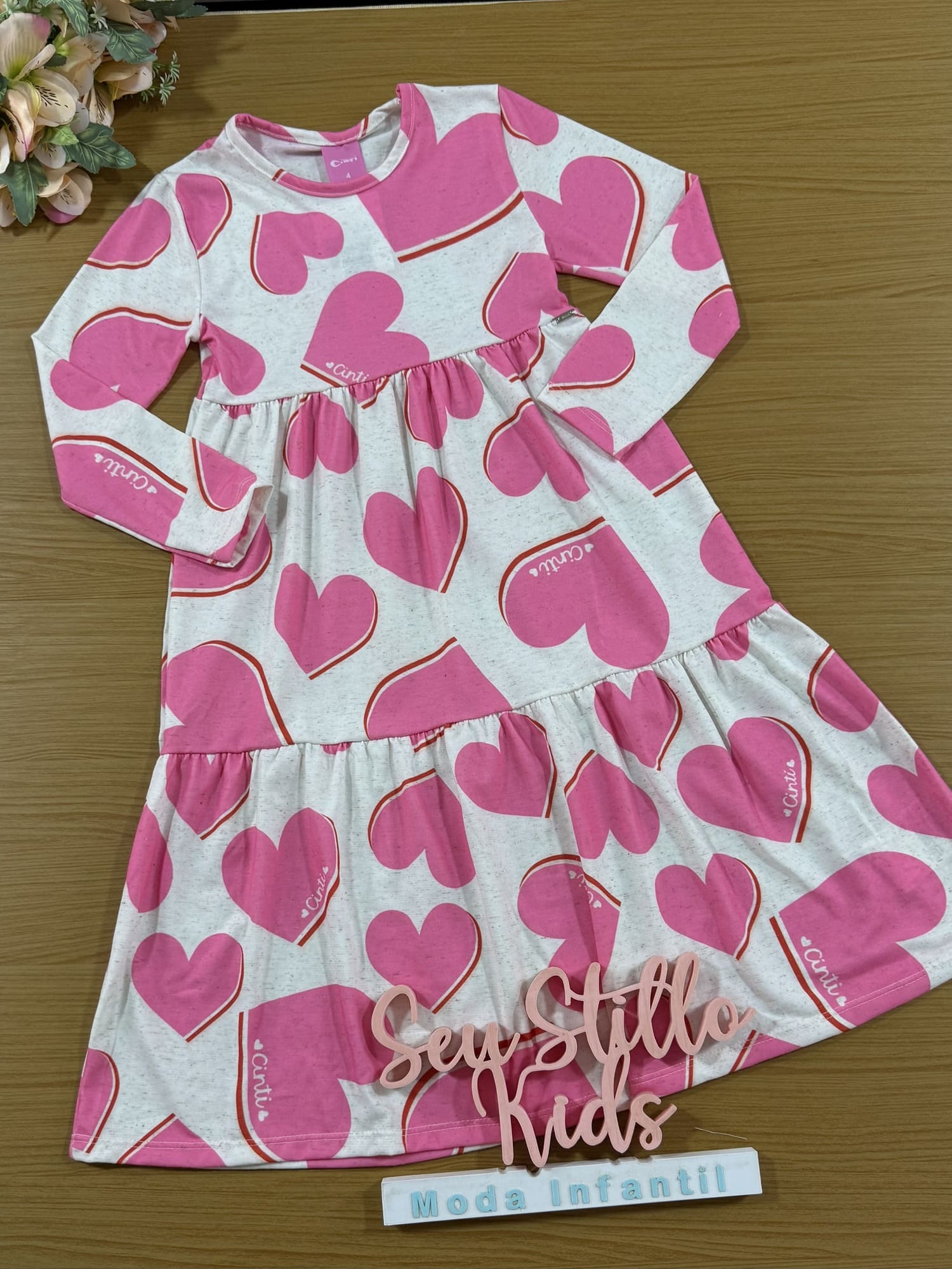 Vestido Infantil Cinti Inverno Midi Corações