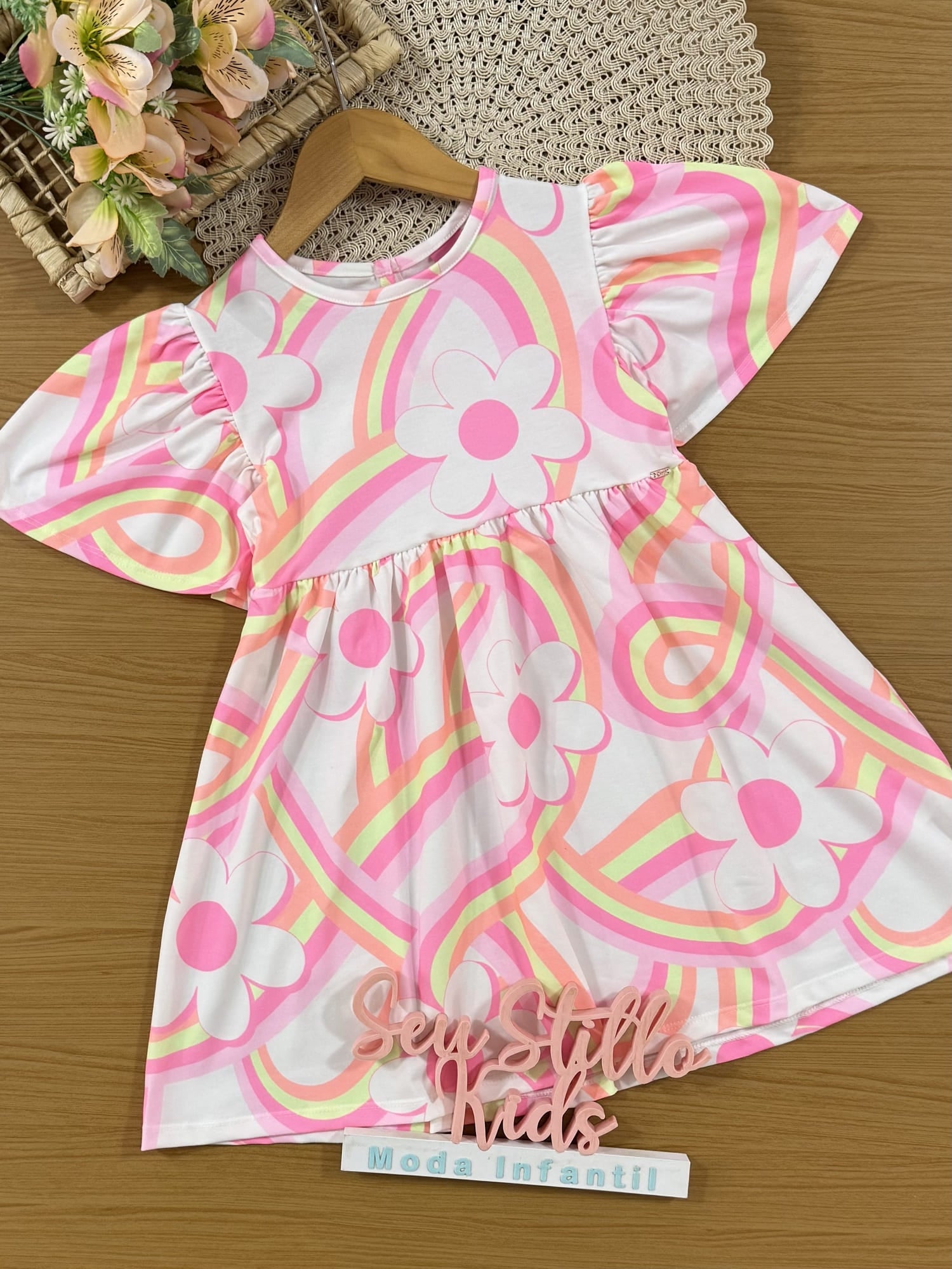 Vestido Infantil Cinti Verão Branco Arco-íris Floral